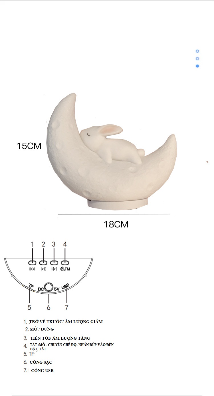 ✨Đèn ngủ mặt trăng ,loa kết nối bluetooth, cổng USB cho chất lượng âm thanh sống động,nghe đài FM (Hàng nhập khẩu)
