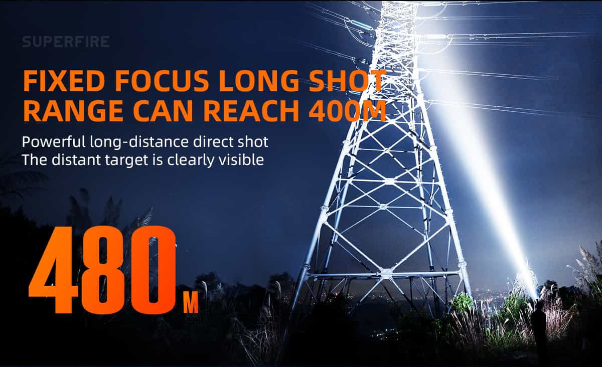 Đèn pin đội đầu Superfire HL60 được thiết kế với chóa lớn cho phép tập trung ánh sáng khiến nó có thể chiếu sáng một khoảng cách lên đến 400m