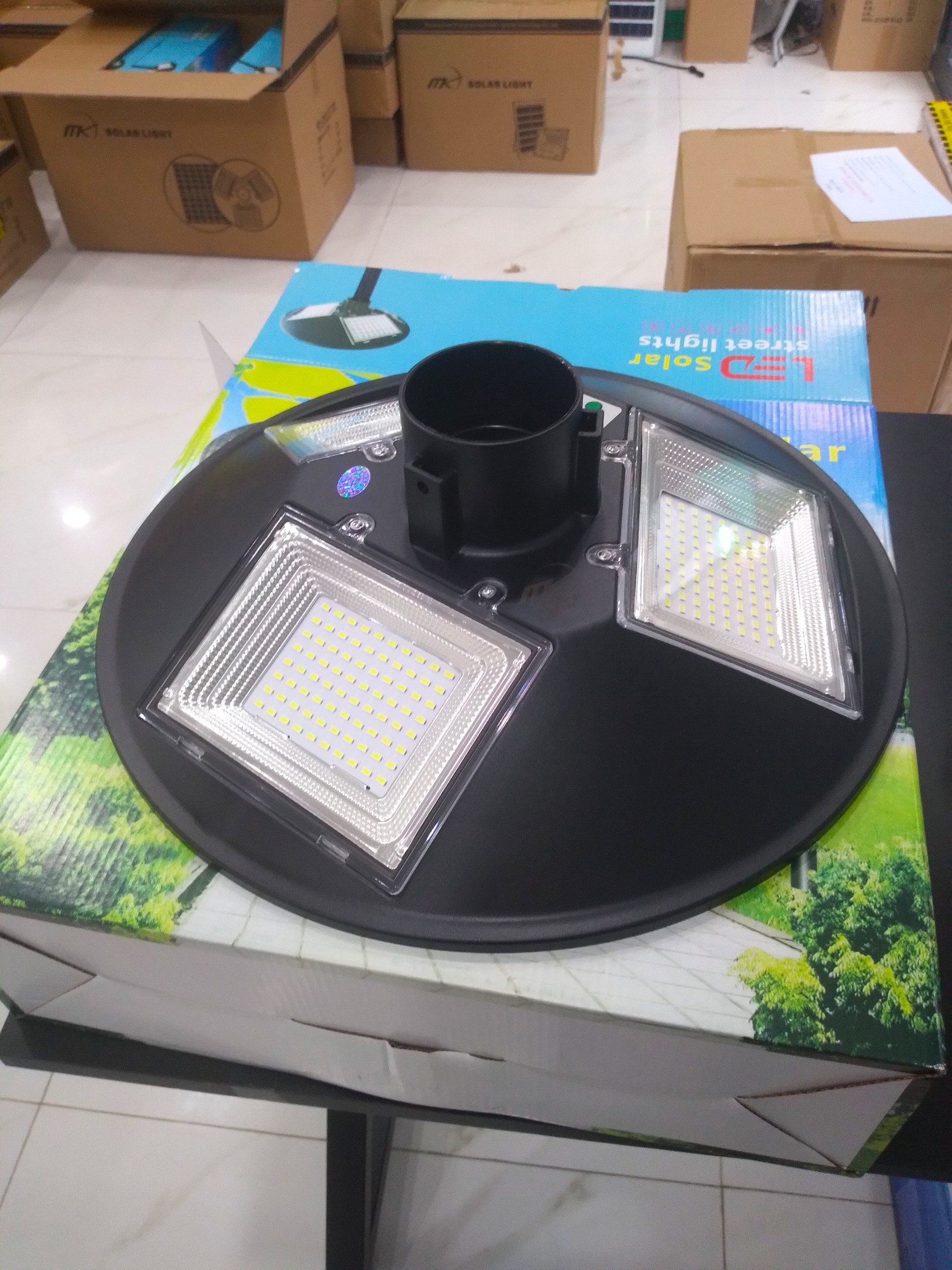 Đèn năng lượng mặt trời sân vườn, công viên UFO-500w-400 Chip Led. (5 ô) Đèn Đĩa Bay chuyên dùng trong các dự án lắp đặt đèn ở công viên, sân vườn, chung cư, bệnh viện…