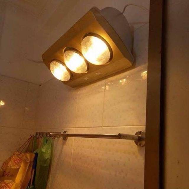 - Thông số kỹ thuật của sản phẩm Đèn Sưởi Nhà Tắm Tên sản phẩm: Đèn Sưởi Nhà Tắm 3 BÓNG Kích cỡ: 30 x 60 x 30 cm Công suất: 750 W Bảng điều khiển: 2 công tắc điều khiển 3 bóng có thể bật 1/2/3 khác nhau Bóng đèn: 3 bóng tráng kim cương nhân tạo có tác dụng tăng độ ấm và giảm chói mắt khi sử dụng Tuổi thọ Bóng đèn: > 10.000 h (tương đương 6 năm) Dây điện: dài 2m, đầu cắm tròn, 2 chân theo tiêu chuẩn châu Âu Phụ kiện đi kèm: móc treo 2 vít nở. Diện tích phòng: từ 2 - 4 m