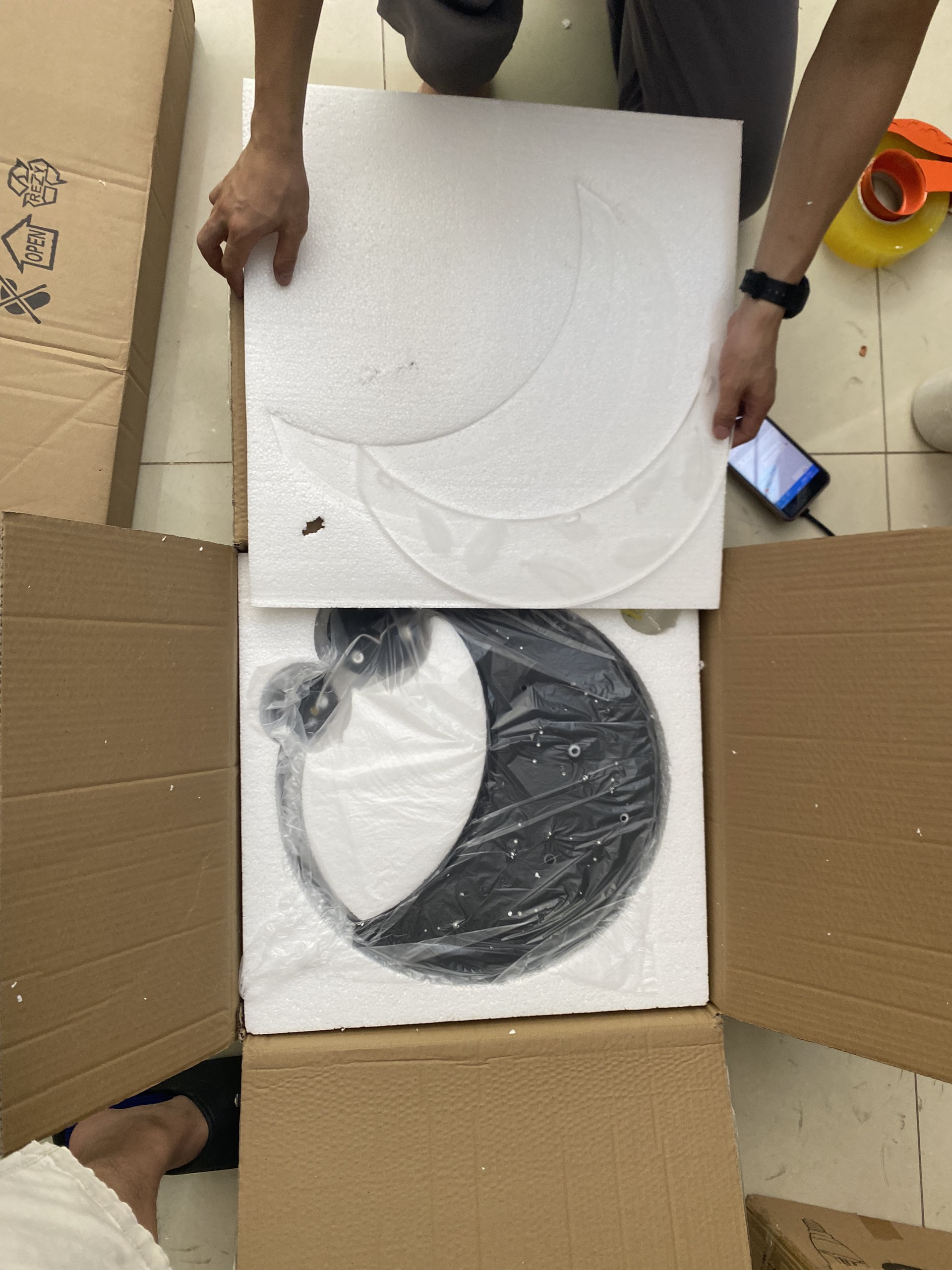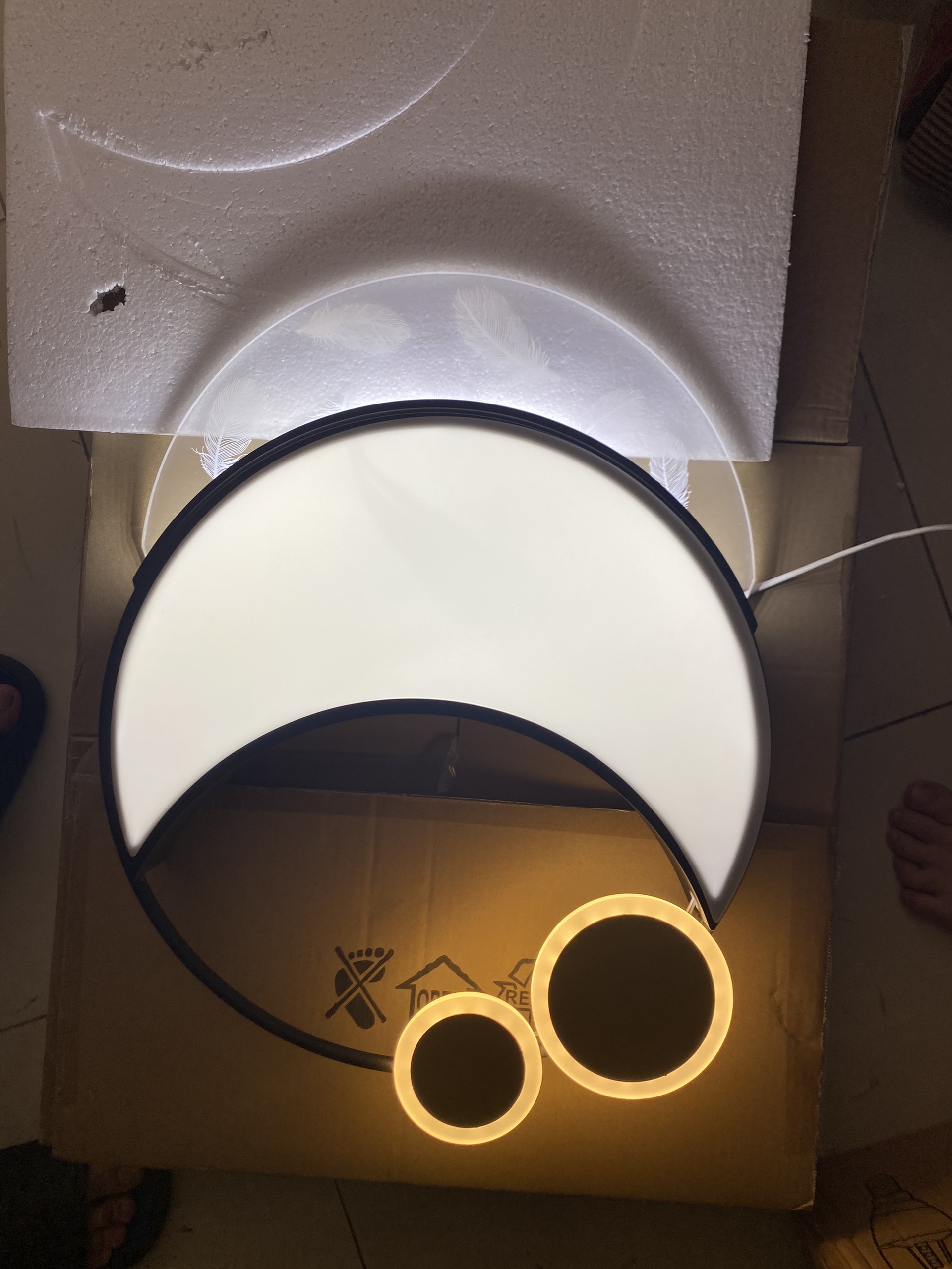 Đèn thả MONSKY IVEN 3 vòng 3 rọi hiện đại phản chiếu hình trăng sao vô cùng đẹp mắt 3 chế độ ánh sáng Để không gian của gia đình trở nên lung linh và
