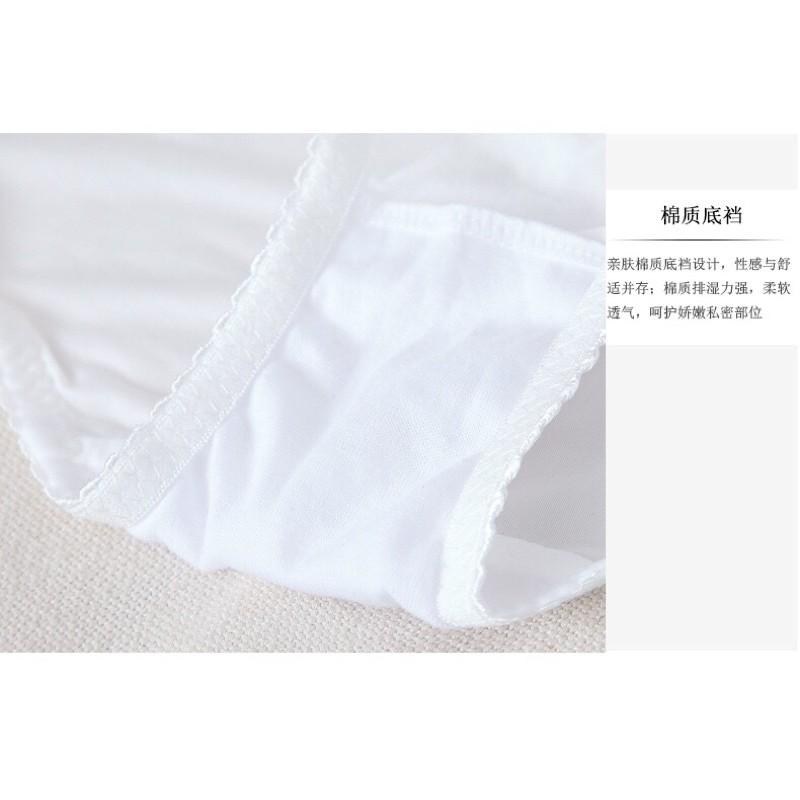 chất ren thoải mái thân thiện với làn da nhạy cảm nhất,kết hợp với vải cotton thoáng khí thoải mái với lớp lót áo sợi lưới thiết kế dây đeo vai rất phù hợp, sườn đàn hồi tốt, có 2 hàng và 3 nút khóa cài . Đáy quần có 2 lớp với lớp vải cotton khoáng khi hút ẩm tốt.