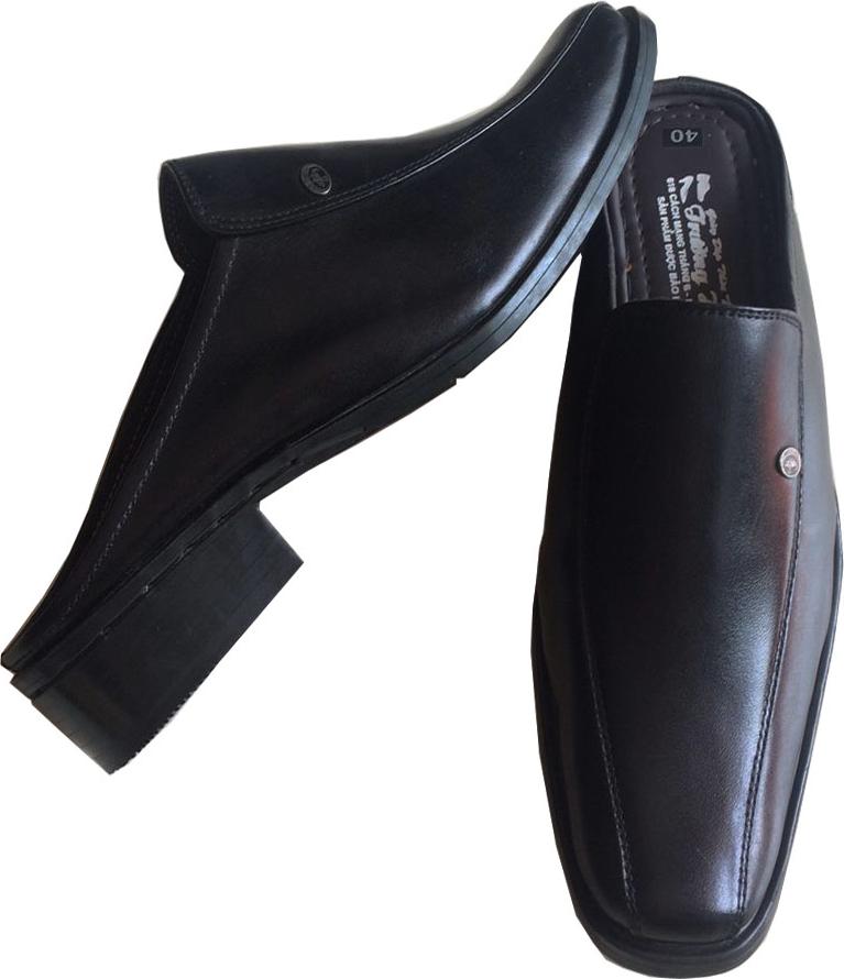 ✨Dép nam bít mũi da bò Trường Hải màu đen đế cao 3.5cm HÌNH ẢNH THẬT