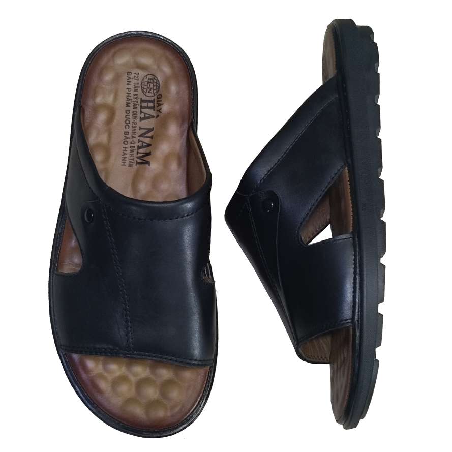 DÉP NAM DA BÒ CAO CẤP - THƯƠNG HIỆU HÀ NAM - Da bò thật, bền đẹp: Dép nam được làm từ 100% da bò thật, mềm mại, thoáng khí, đảm bảo độ bền cao