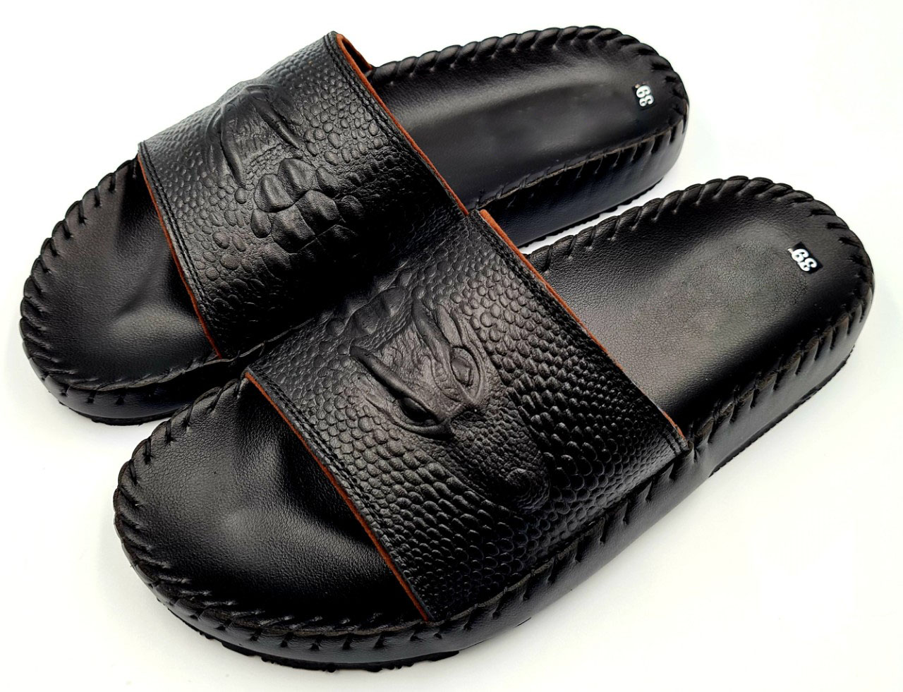 DÉP QUAI NGANG NAM DA BÒ 100%, QUAI CÁ SẤU SẮC NÉT Dép quai ngang cá sấu da bò 100% Chất liệu: Da bò thật thật 100% da bò tự nhiên Đế cao su tốt