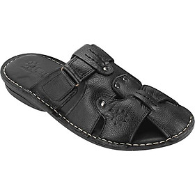 Dép nam Huy hoàng da bò quai hậu màu đen 7146