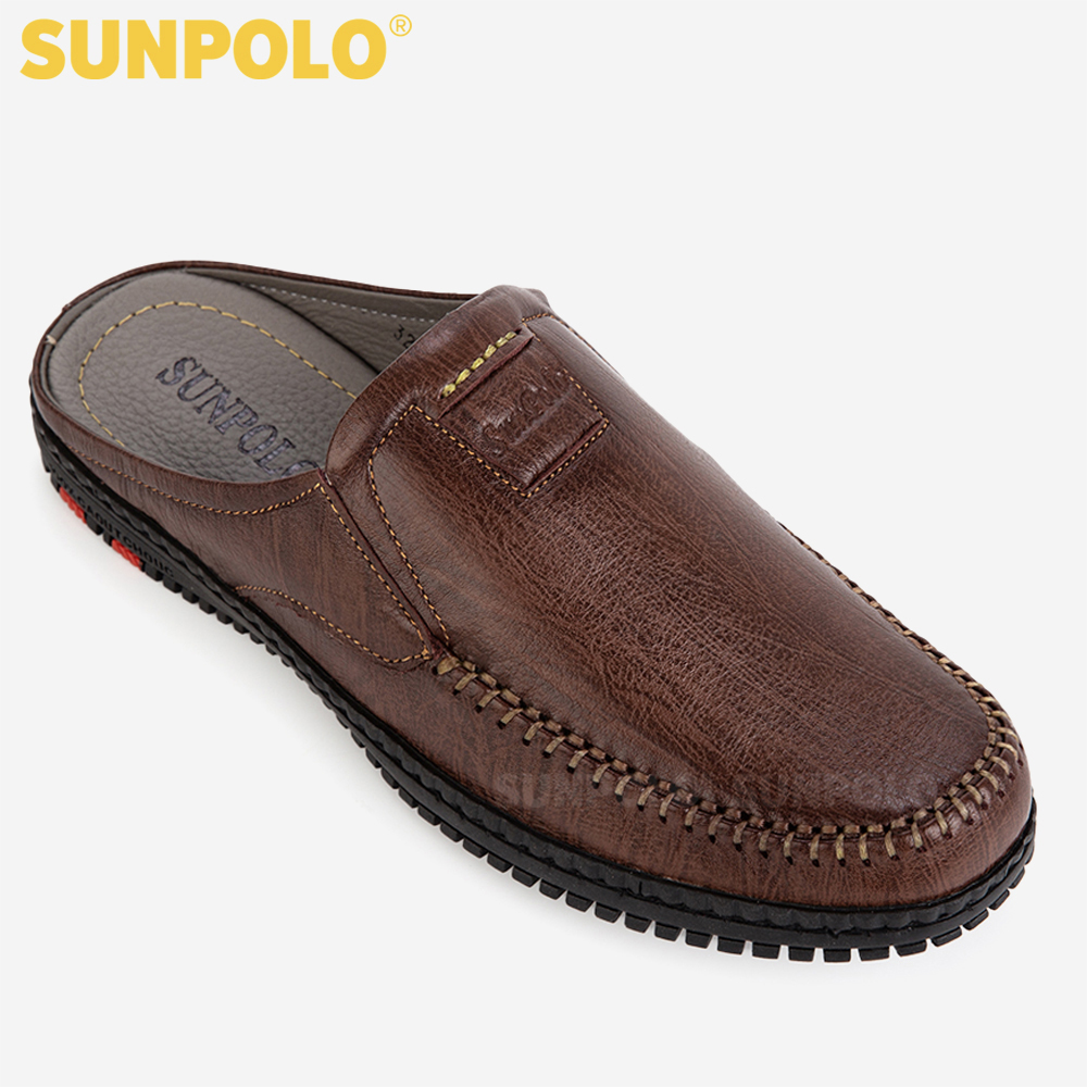 ✨Dép Sục, Dép Sapo Nam Da Bò SUNPOLO SUT327 (Đen, Nâu)
