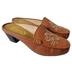 Giày Sục Nữ Giày Cao Gót 3Cm Da Bò Thật Siêu Mềm Cao Cấp Evelynv 3P2916 (Đen)