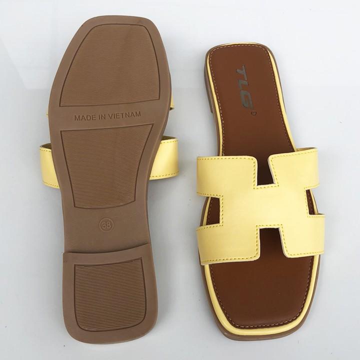 ✨Dép Thời Trang Nữ Da PU Cao Cấp Quai Ngang Chũ H Lót Dép Mềm Êm 21307