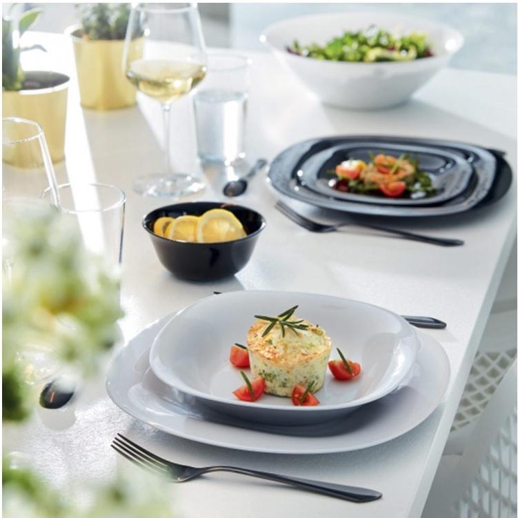 ✨Đĩa (dĩa) thủy tinh đựng món xào, sốt Luminarc Carine Granit 21cm - N6612, dùng vi sóng, sản xuất Pháp