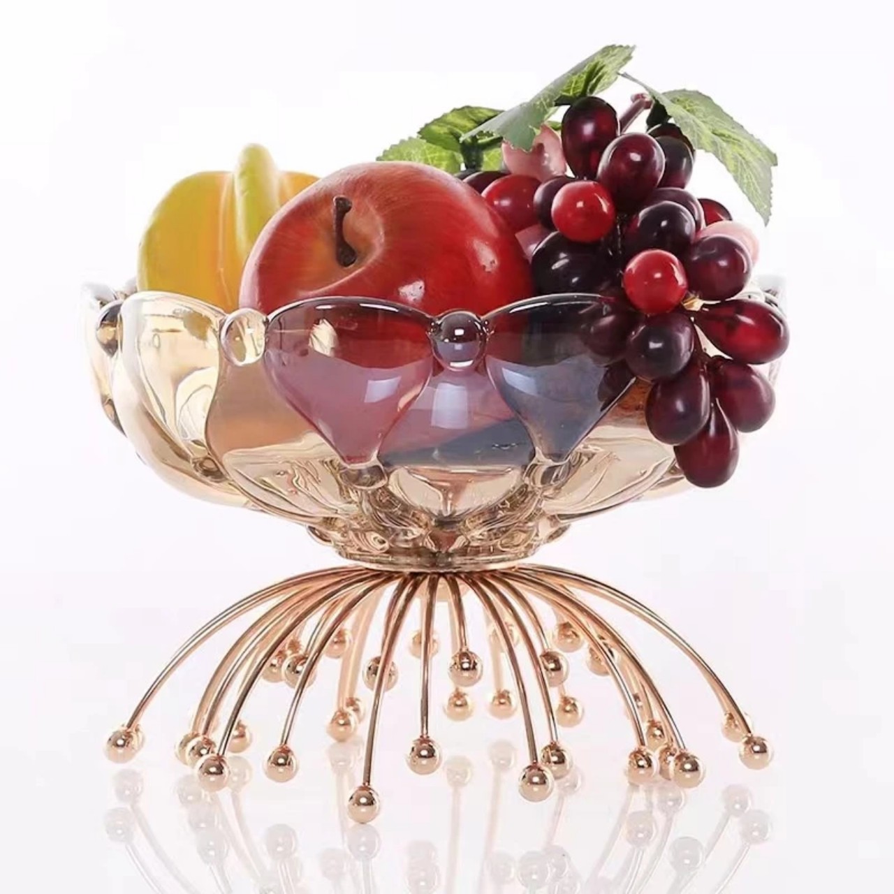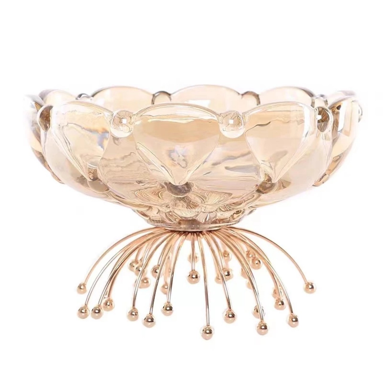 ✨Đĩa Thuỷ Tinh Đựng Hoa Quả, Khay Thuỷ Tinh Pha Lê Đựng Hoa Quả Sang Trọng - KHAY MỨT Chân Bồng Pha Lê Mạ Vàng Phong Cách Royal Sang Trọng - HÀNG CHÍNH HÃNG MINIIN