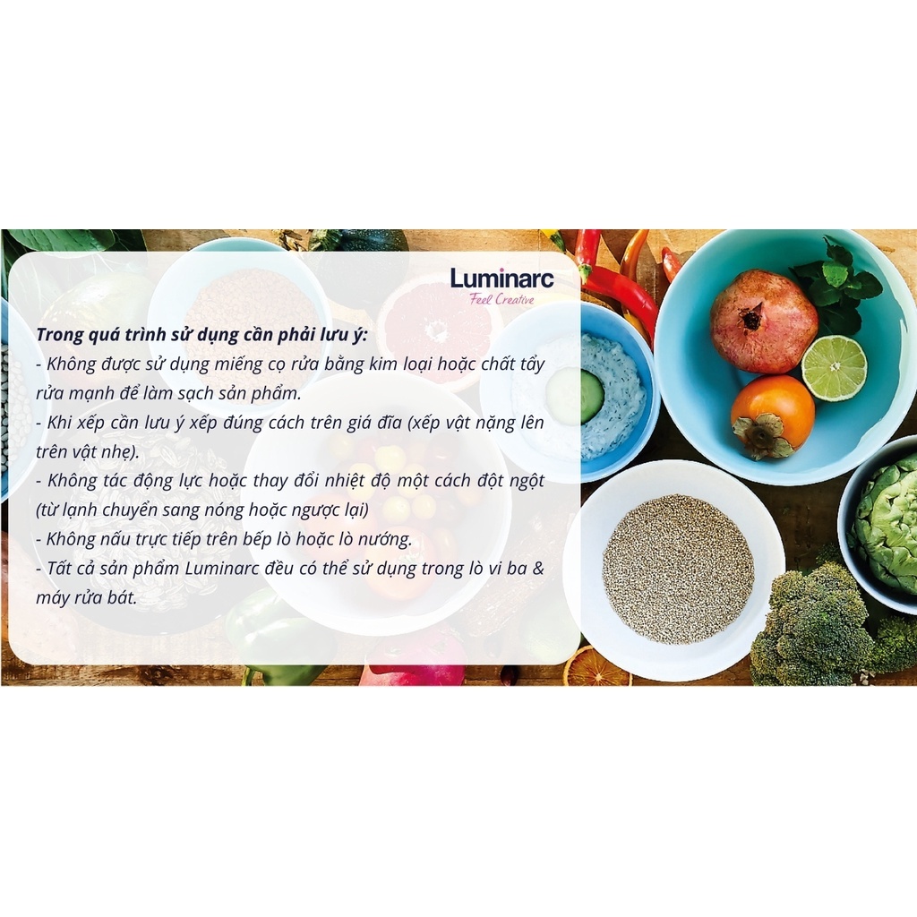 • Tất cả sản phẩm tô, chén, đĩa của Luminarc đều có thể sử dụng trong lò vi ba & máy rửa bát.
