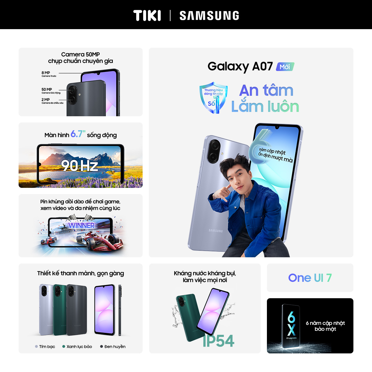 ✨Điện Thoại Samsung Galaxy A07 (4/128GB), Màn Hình Lớn 6.7'', Pin 5000mAh, IP54 Kháng Nước Kháng Bụi - Hàng Chính Hãng