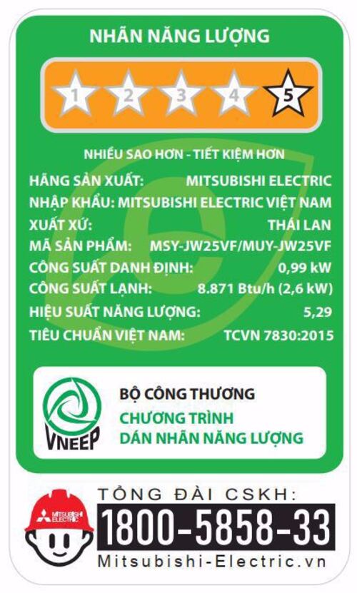 Mua tại TiktokĐIỀU HÒA KHÔNG KHÍ MITSUBISHI ELECTRIC MSY-JW25VF - 1HP (9,000 BTU/h) Máy lạnh MSY-JW25VF nằm trong dòng sản phẩm Inverter Một Chiều Sang Trọng MSY-JW series của Mitsubishi Electric, giúp tiết kiệm năng lượng tối đa và vận hành cực kỳ êm ái, giúp mang lại sự thoải mái cho không gian sống và đáp ứng nhu cầu điều hòa không khí của người dùng. Bảo hành: - Thân máy: 2 năm - Máy nén: 5 năm Thông số kỹ thuật: