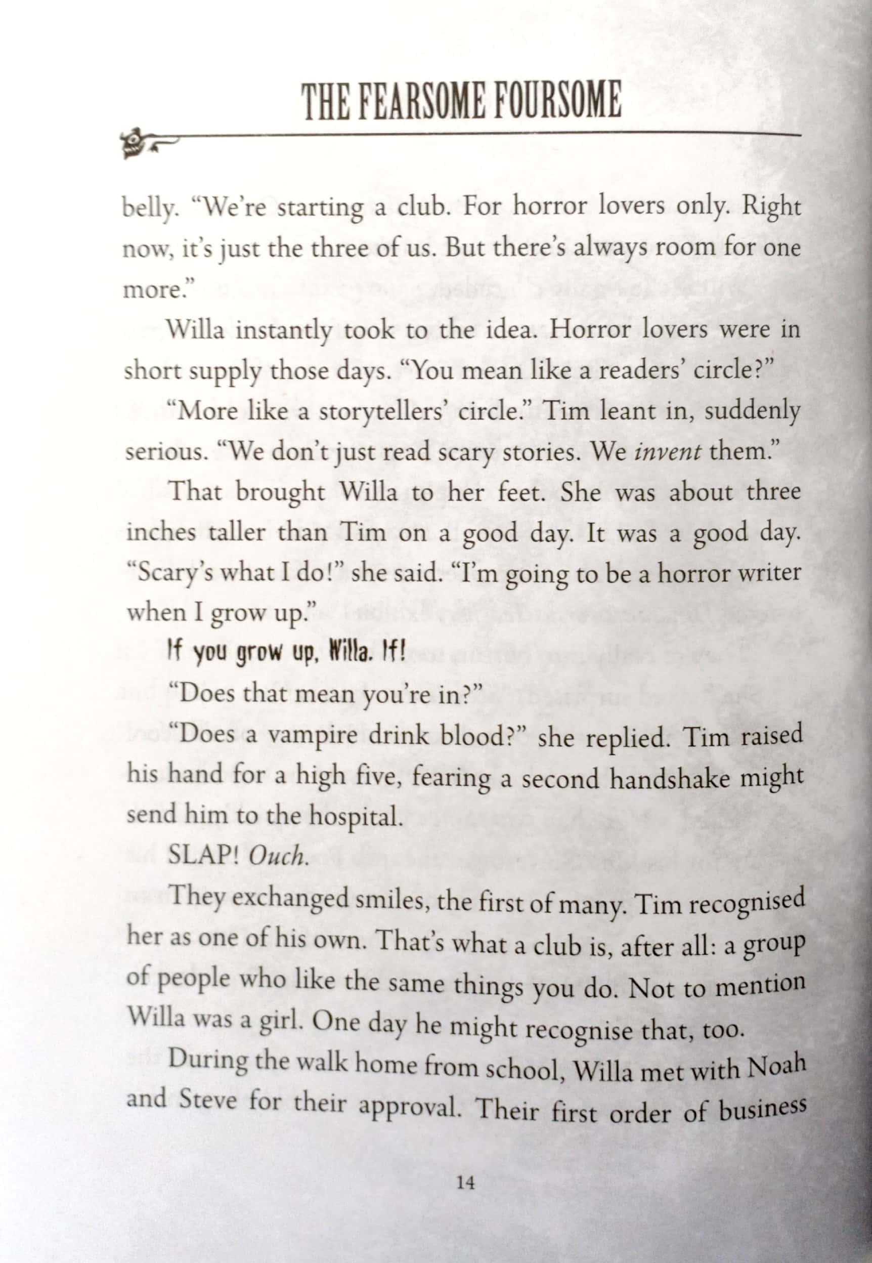 Welcome, foolish mortals, to the lonesome library of the Haunted Mansion. In this bone-chilling book, you will read the terrifying tales of the Fearsome Foursome - four kids who try to out-scare each other with frightening fictions of their own. But just wait until they hear my spooky stories. Who am I? I am Amicus Arcane, your librarian and host. Your Ghost Host. So read if you dare!