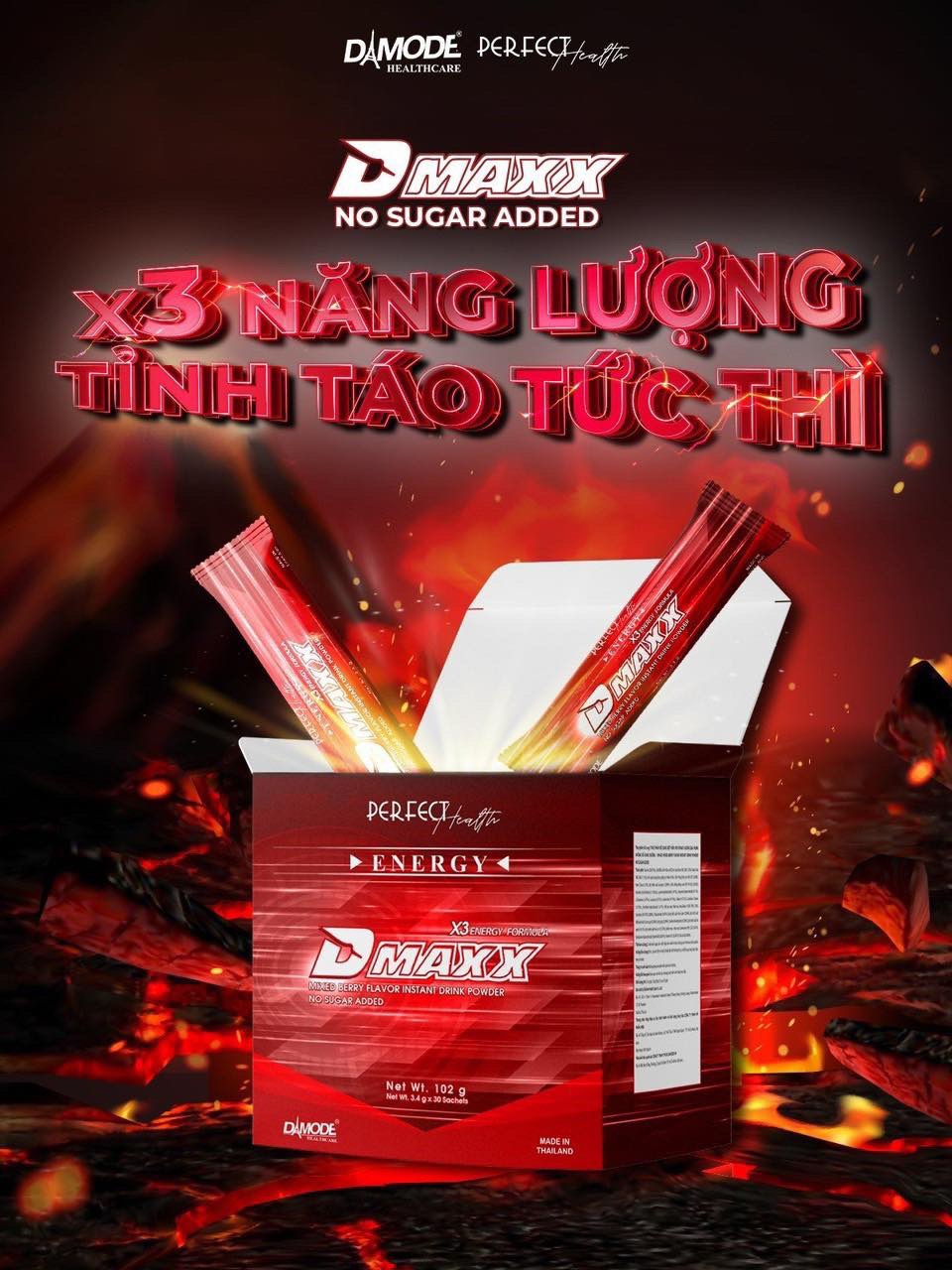✨DMAXX thức uống bổ sung vitamin năng lượng không đường DAMODE 10 gói dùng thử màu đỏ