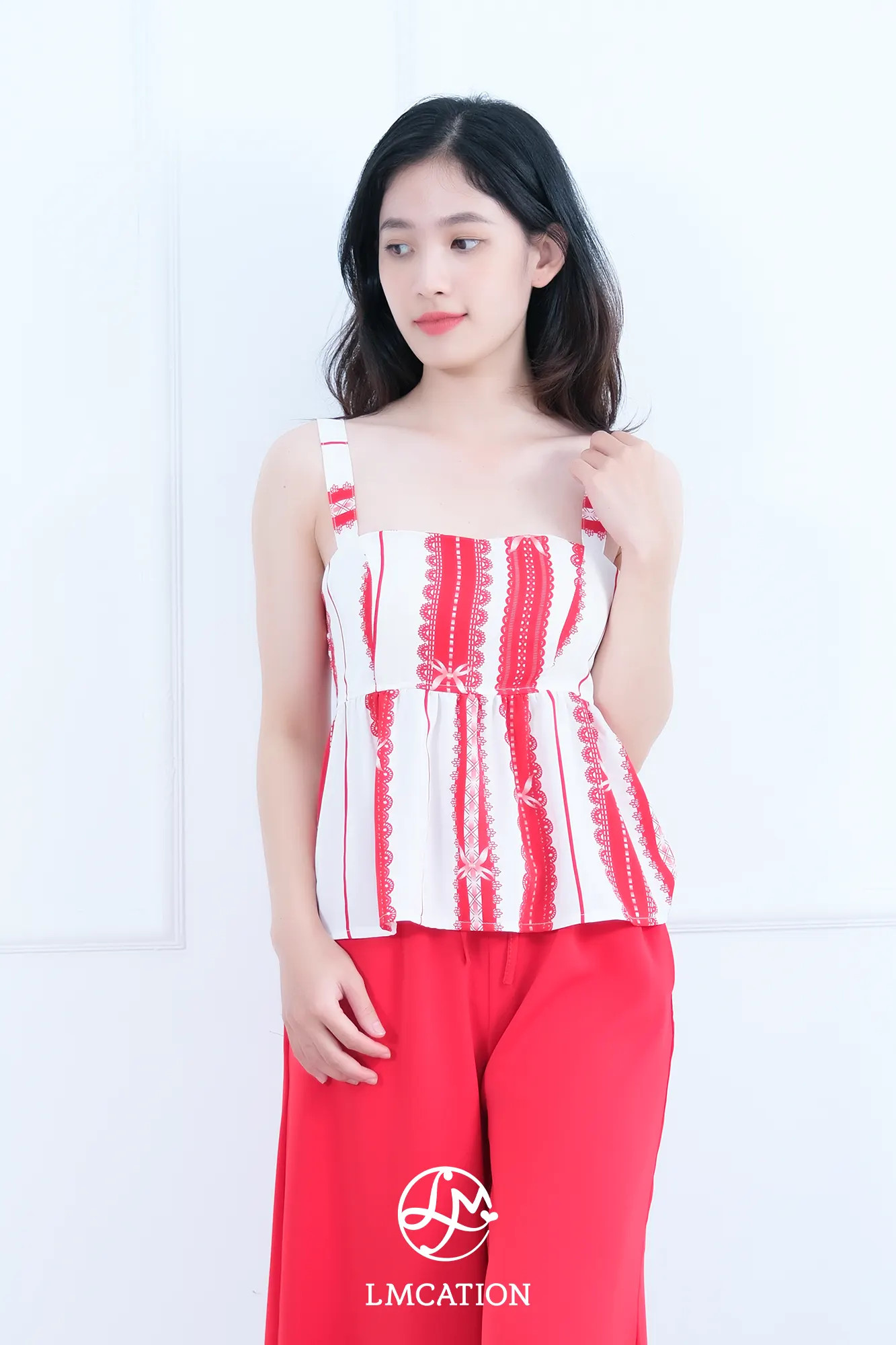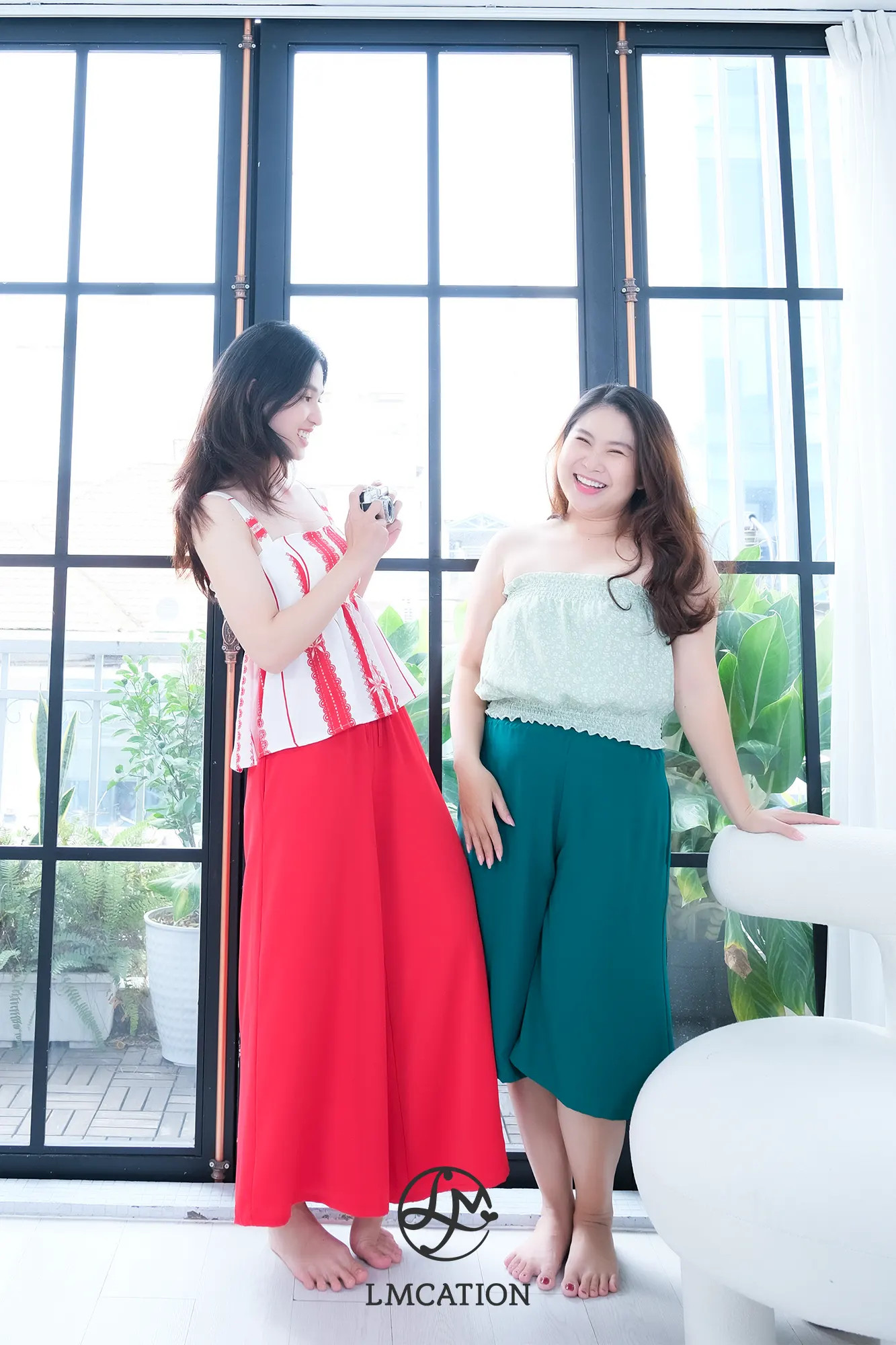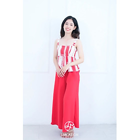 ✨Đồ Bộ Mặc Nhà LMcation - Áo dây Clara màu sọc nơ đỏ & Quần váy dài Mila màu đỏ