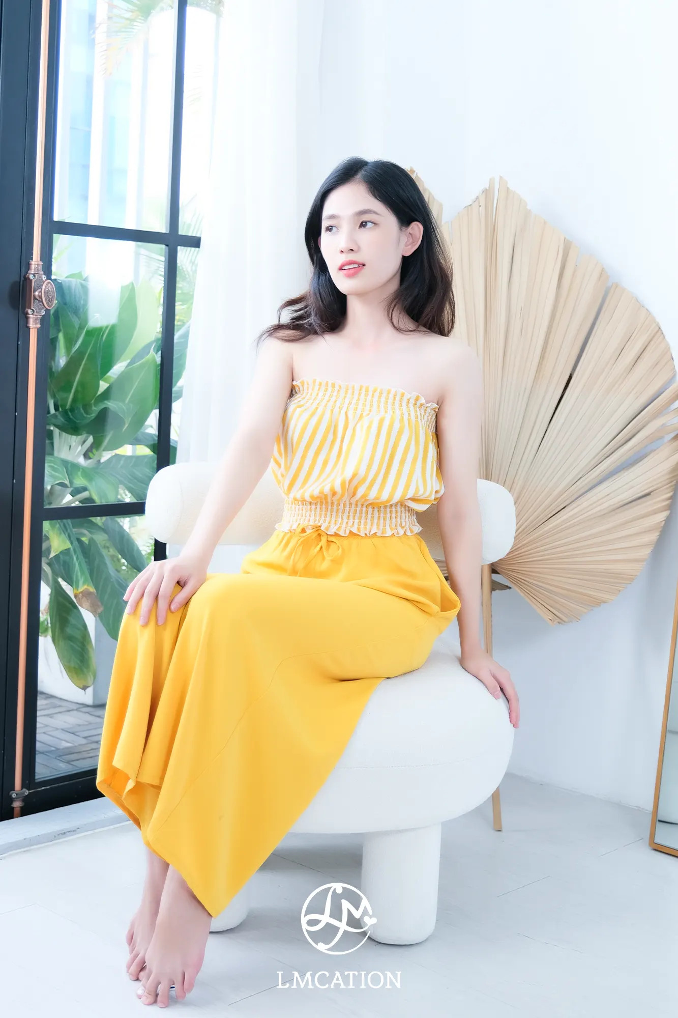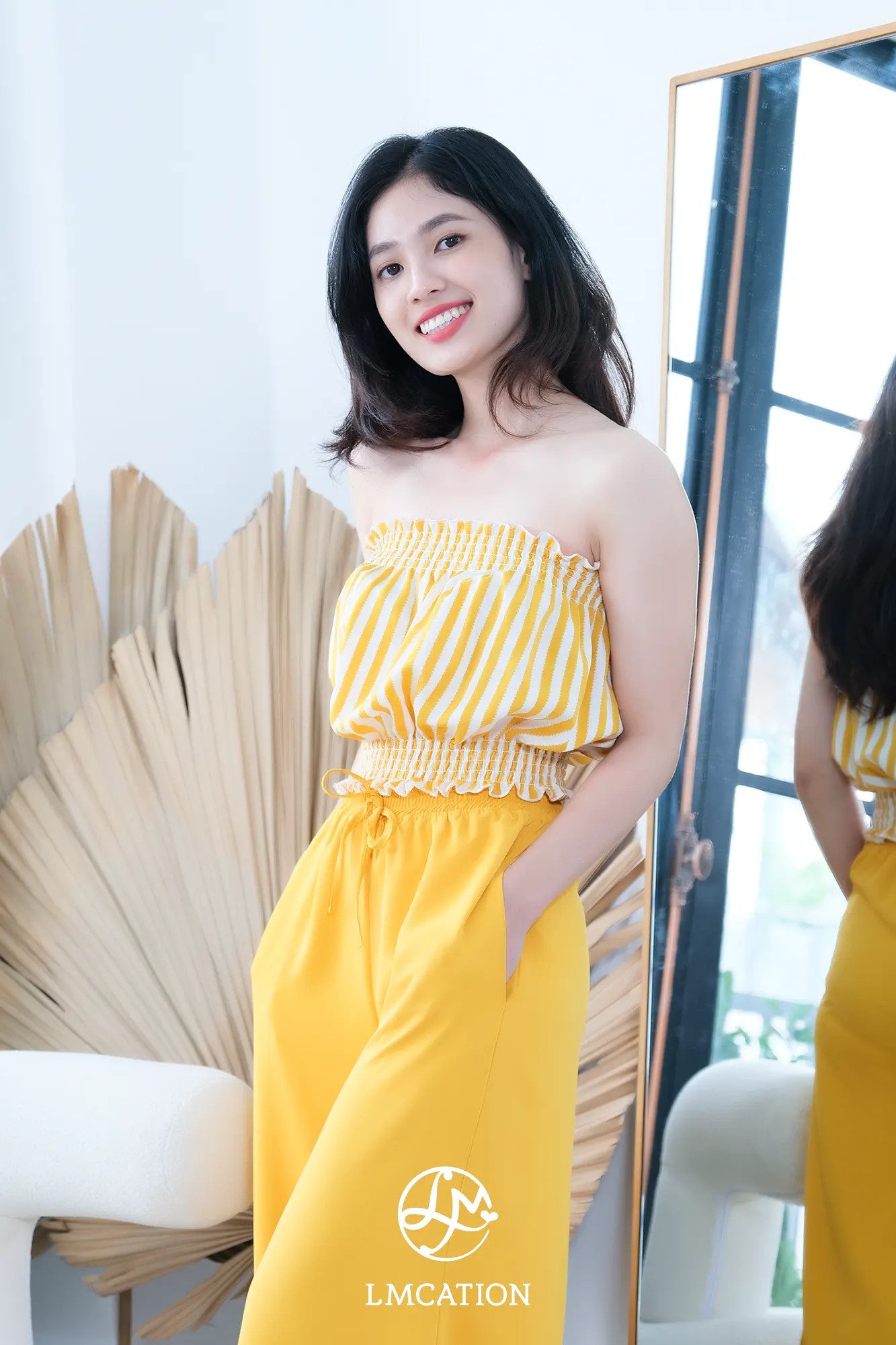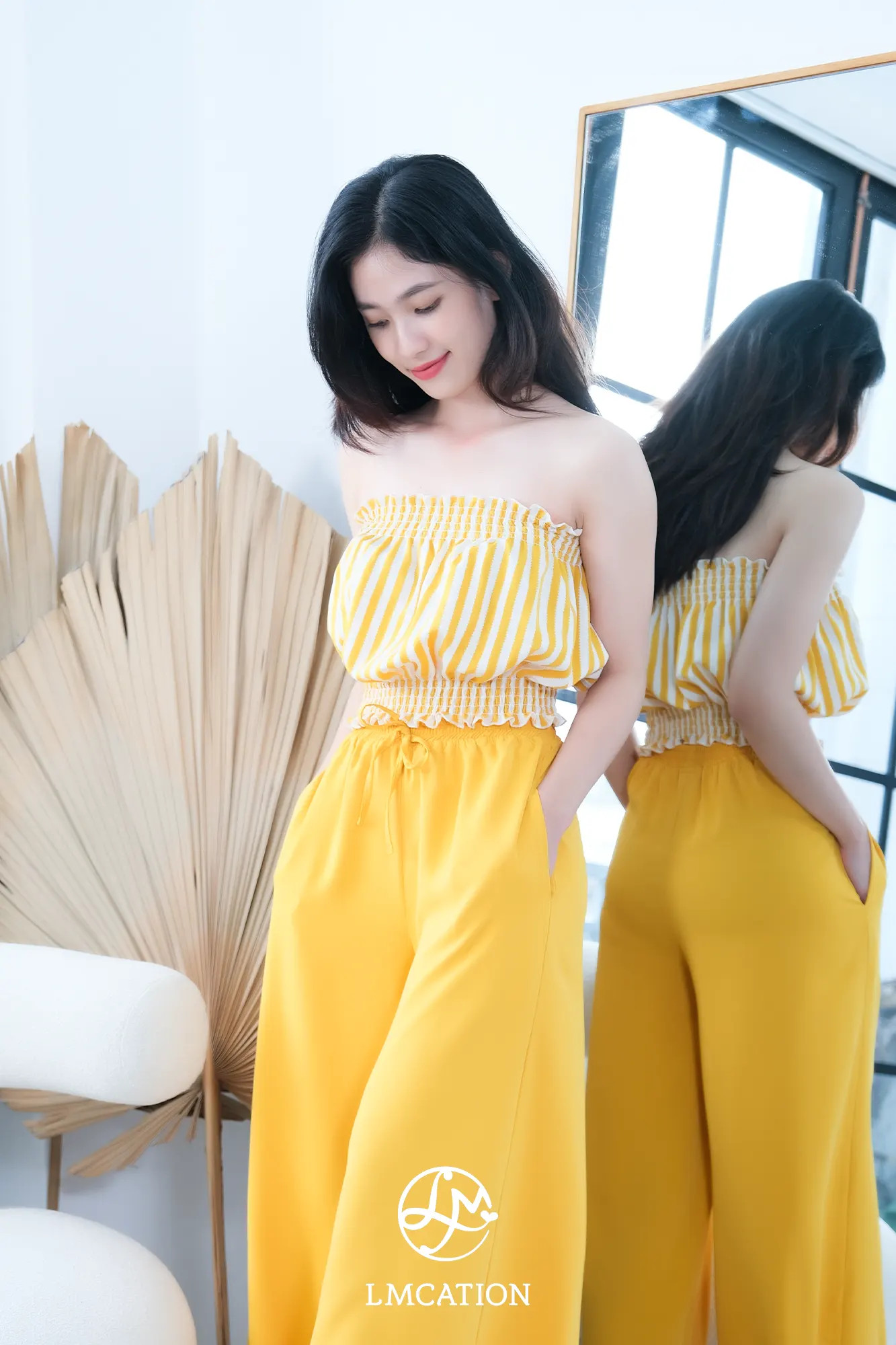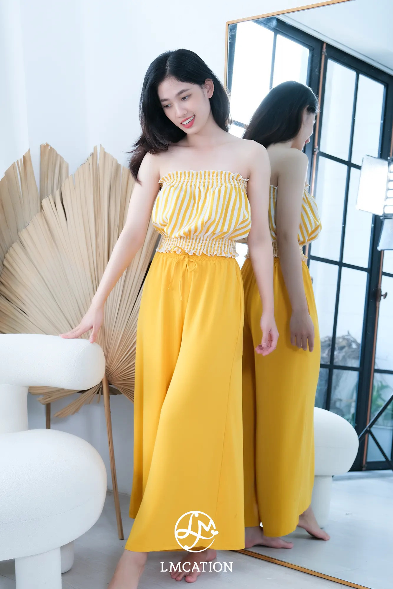 ✨Đồ Bộ Mặc Nhà LMcation - Áo ống Carol màu sọc vàng & Quần váy dài Mila màu vàng