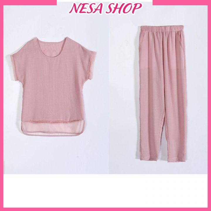 ✨Đồ bộ trung niên tay ngắn cho Bà cho Mẹ, chất liệu Đũi mát mẻ, thấm hút mồ hôi, đồ bộ mặc nhà NeSa Shop ĐBH.27
