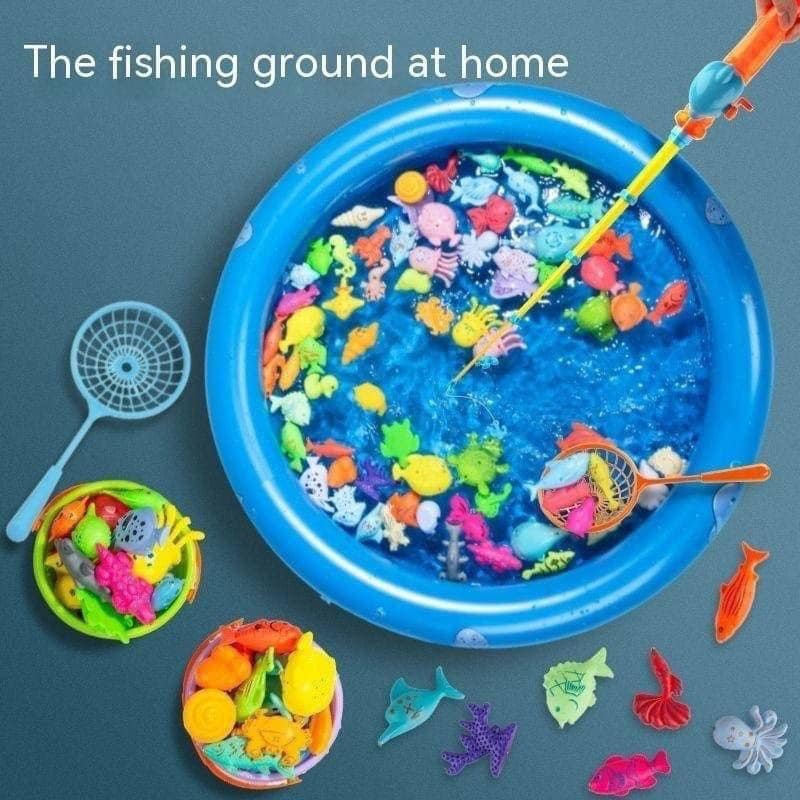 - Cho con trẻ tuổi thơ vui vẻ tránh xa thiết bị điện tử máy tính điện thoạ MÔ TẢ SẢN PHẨM: 1 Bộ câu cá bao gồm: 34 sinh vật biển gắn vít, 2 cần câu rút gắn nam châm, 2 xô nhựa, 2 vợt, 1 bơm, 1 bể phao cỡ lớn 60cm.