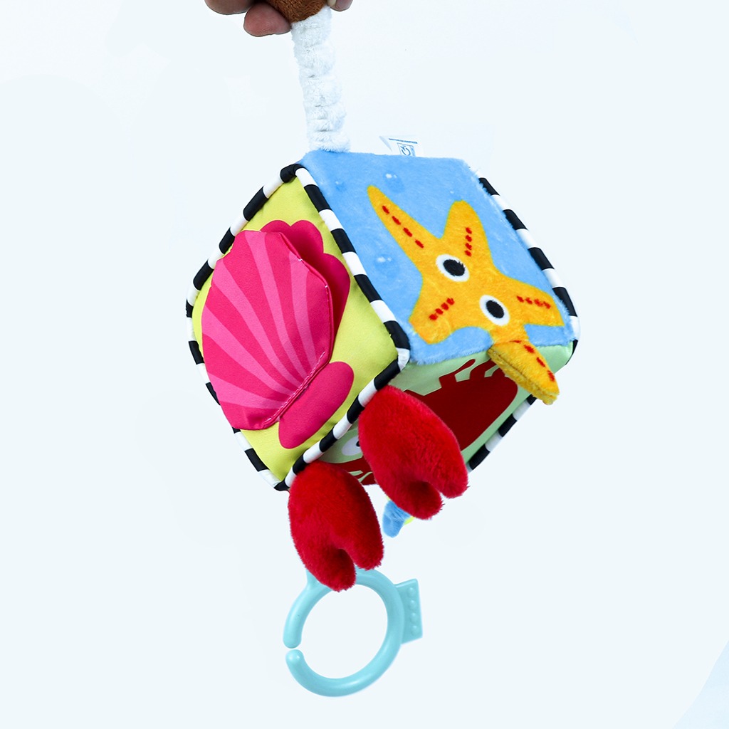 - Khối vải có 1 mặt đen trắng đóng vai trò như một treo nôi, bé sẽ được quan sát mặt đen trắng này khi treo khối lên. Mặt đen trắng này nhằm kích thích phát triển thị giác cho bé. Sản phẩm có móc nhỏ dễ dàng cho việc treo lên cao.