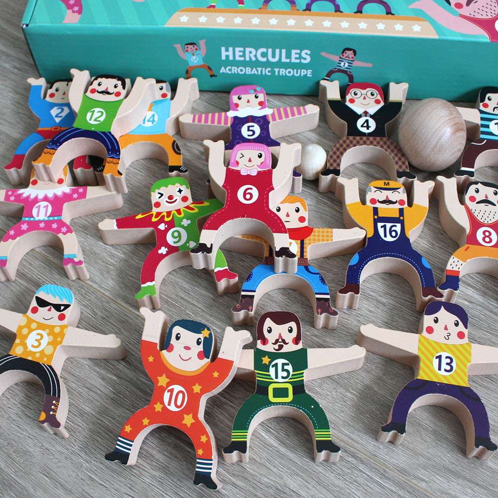 Đồ chơi trẻ em Bộ Lắp Ráp Thăng Bằng Giúp Bé Khả Năng Tập Trung, Khéo léo Bộ đồ chơi bao gồm 16 chú hề gỗ làm xiếc cao cấp 02 quả bóng lớn và