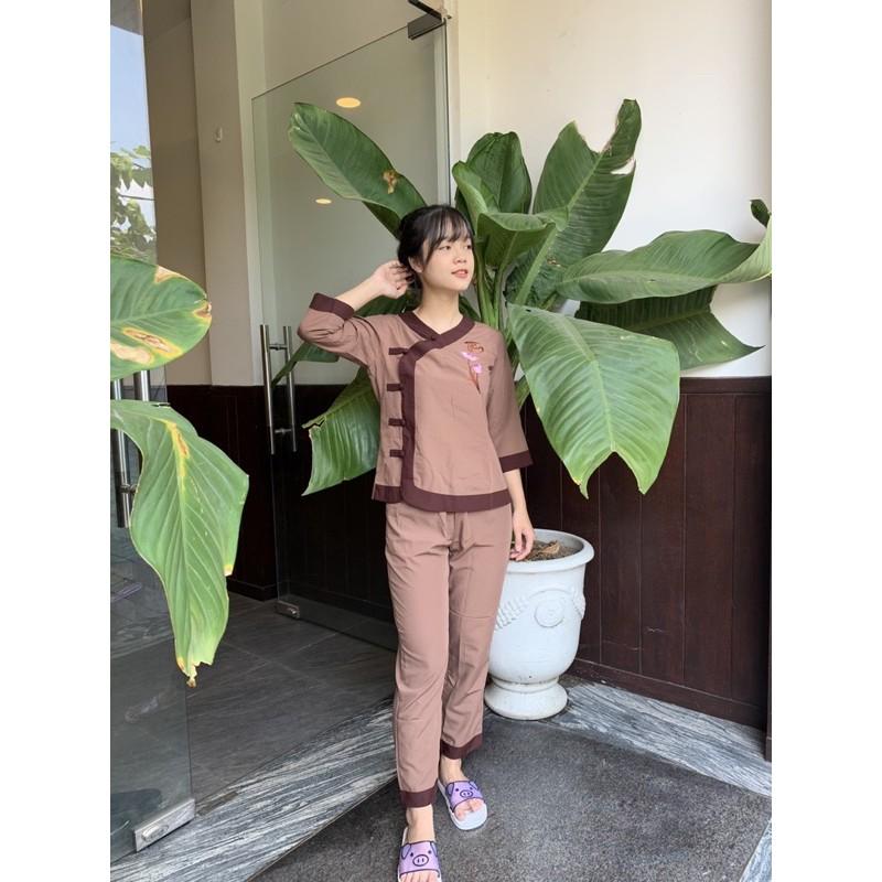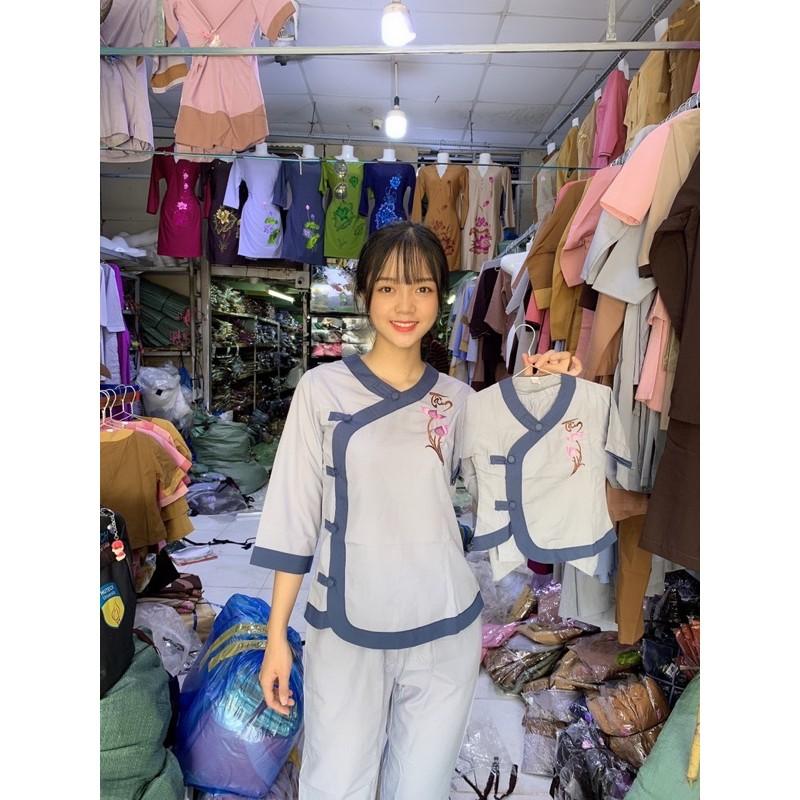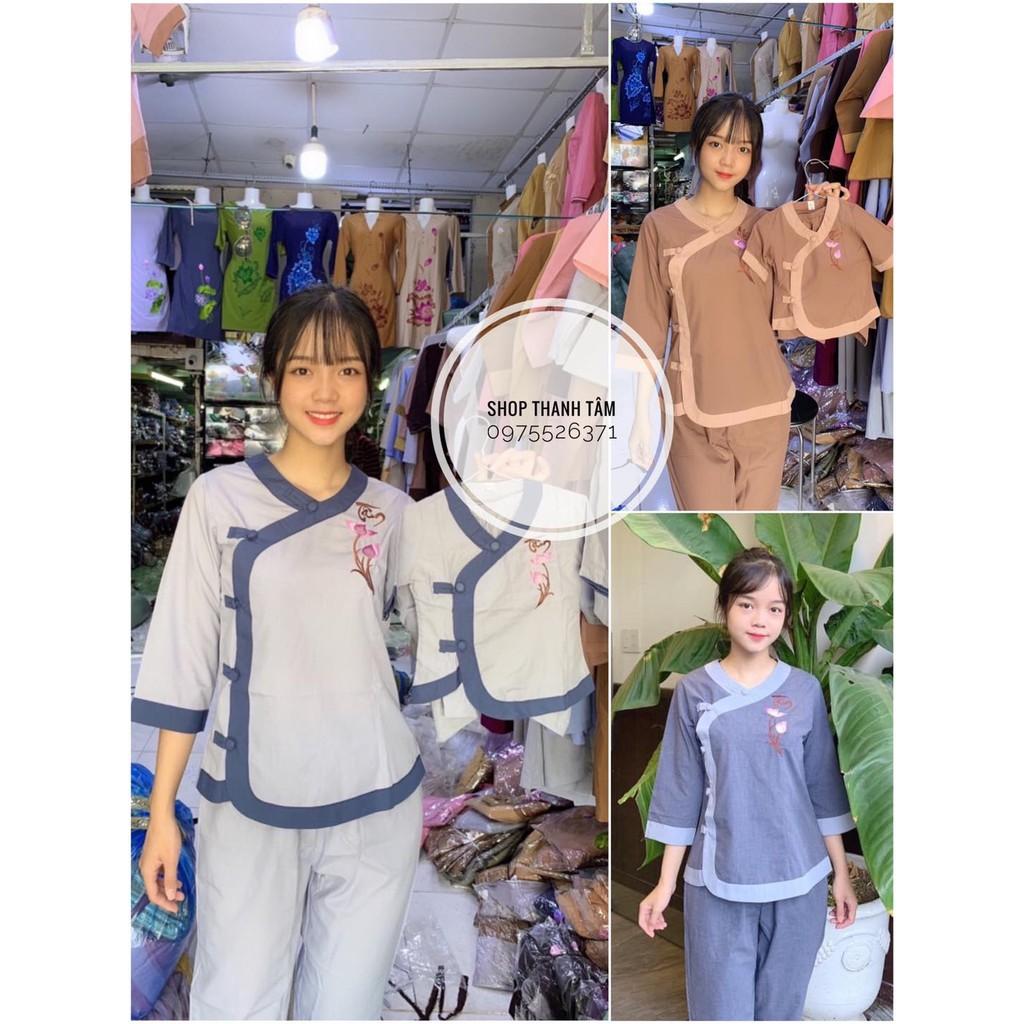 set quần áo Phật tử nữ - đồ lam đi chùa đẹp giá rẻ 199k - pháp phục Sen Hồng Hà Nội HCM 0898553583