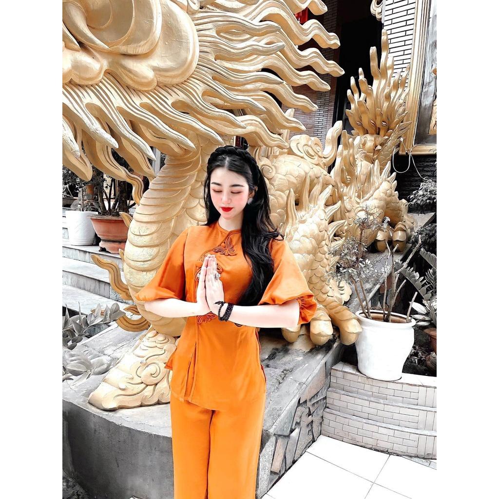 quần áo Phật tử cổ tàu cài chéo - đồ lam đi chùa Sen Hồng - set Phật tử nữ đẹp 0898553583