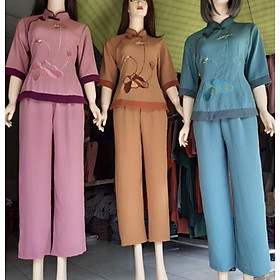✨Đồ Lam Đi Chùa # Sẫm 2Nút Phối Vải Đũi Cao Cấp # Quần Áo Nữ # Đồ Bộ Nữ