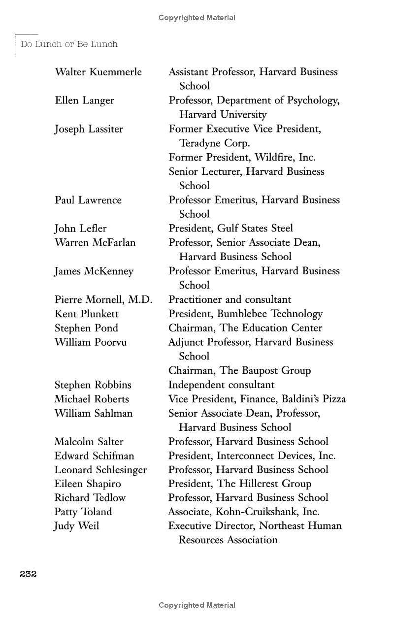 Here is a refreshing antidote to the change manifestos and reinvention tracts that currently crowd the business bookshelves. Do Lunch or Be Lunch is a provocative argument for predictability...
