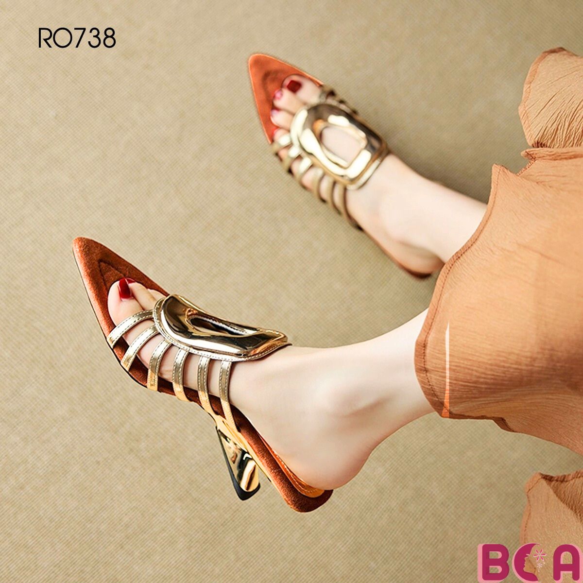 Giày sandal cao gót RO740 – sang trọng, thoải mái, thời thượng Bạn muốn tìm một đôi giày nổi bật giữa đám đông? RO740 chính là lựa chọn lý tưởng. Thiết kế mũi nhọn thanh
