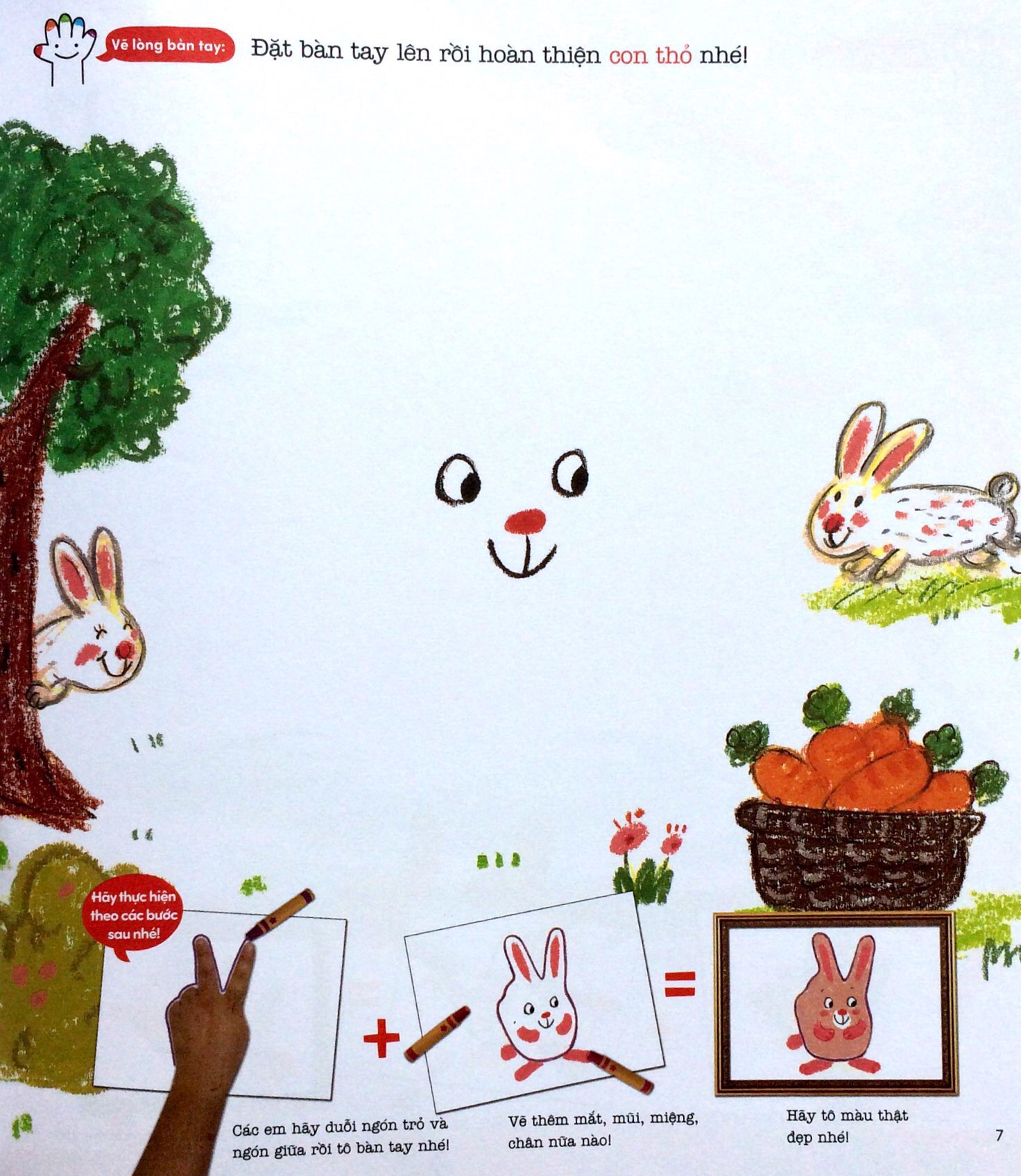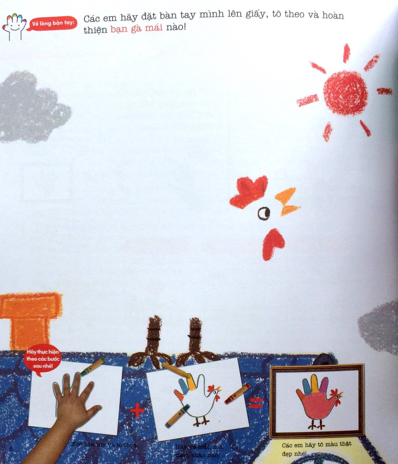 Trẻ sẽ có những trải nghiệm thú vị khi thấy con khủng long hay con thỏ xuất hiện từ trong lòng bàn tay mình, và trẻ sẽ cảm thấy vô cùng phấn khích. Trẻ đóng dấu lòng bàn tay sẽ cảm thấy hào hứng, phấn khích khi nào là hổ, nào là sư tử, nào là hươu cao cổ hay thỏ xuất hiện. Nào, giờ chúng ta sẽ cùng xem sách nhé? Hãy cùng thoả thích khám phá tài năng tiềm ẩn của trẻ thông qua bộ sách “Đôi tay xinh sáng tạo cả thế giới”