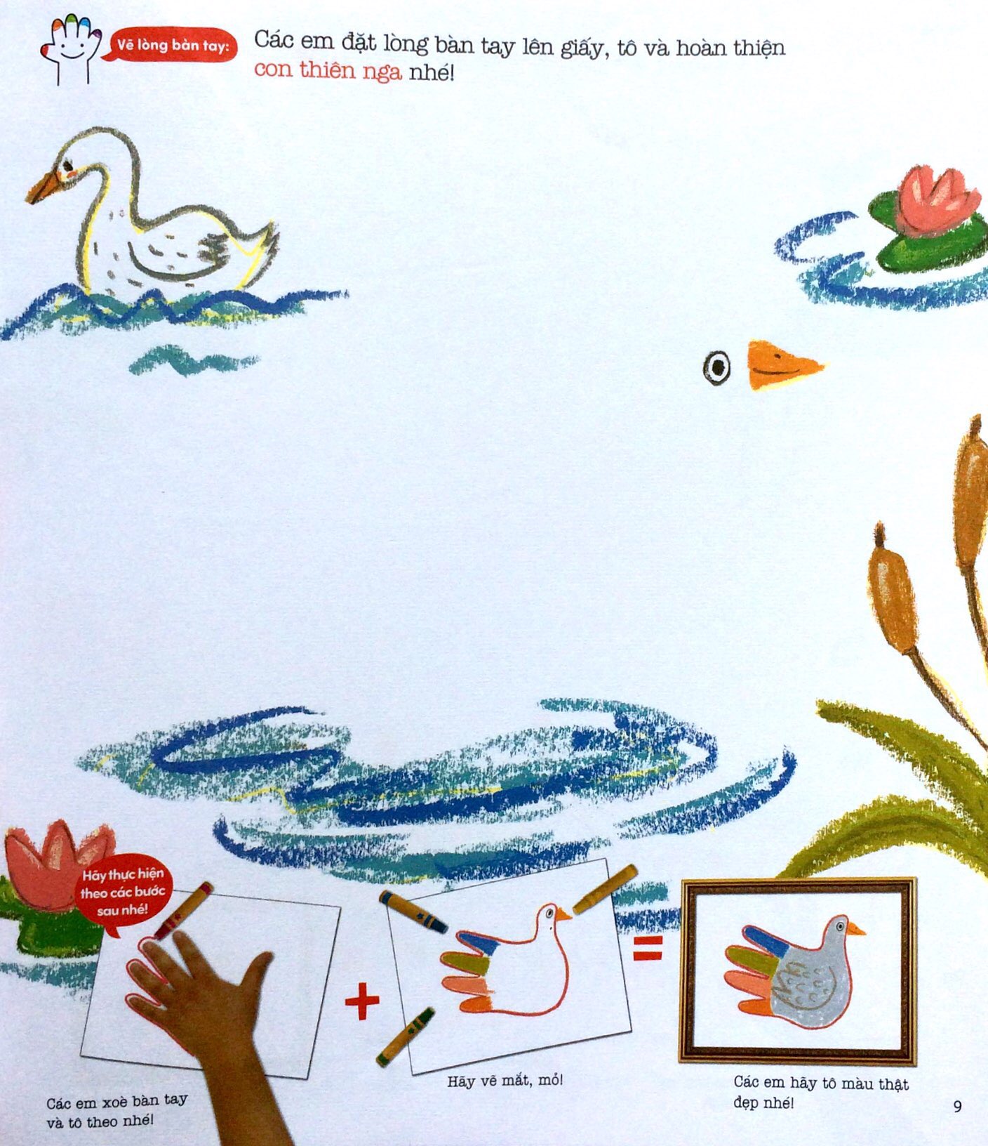Bộ sách “Đôi tay xinh sáng tạo cả thế giới” đã sáng tạo những trò chơi bằng bàn tay giúp các kỹ năng vận động tinh của bàn tay được vận động tối đa. Trẻ sẽ được trải nghiệm các trò chơi mỹ thuật đa dạng bằng chính các kiểu dáng bàn tay đa dạng của các em như: vẽ lòng bàn tay, đóng dấu bằng tay, đóng dấu bằng nắm đấm, đóng dấu bằng lòng bàn tay, vẽ theo lòng bàn tay, vẽ theo hình bàn tay, vẽ theo hình nắm đấm,…Ngoài ra trẻ sẽ được phát triển năng lực nhận biết sự vật, nuôi dưỡng năng lực phối hợp giữa tay và mắt, phát triển cảm xúc toàn điện và phong phú, nuôi dưỡng trí sáng tạo và trí tưởng tượng, tăng khả năng tập trung và trải nghiệm cảm giác thành công