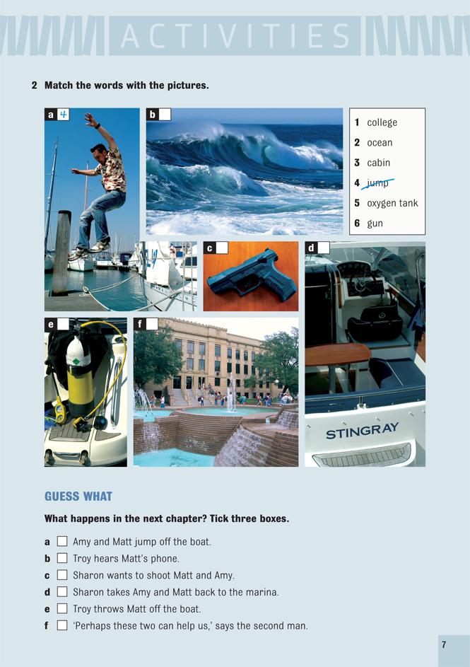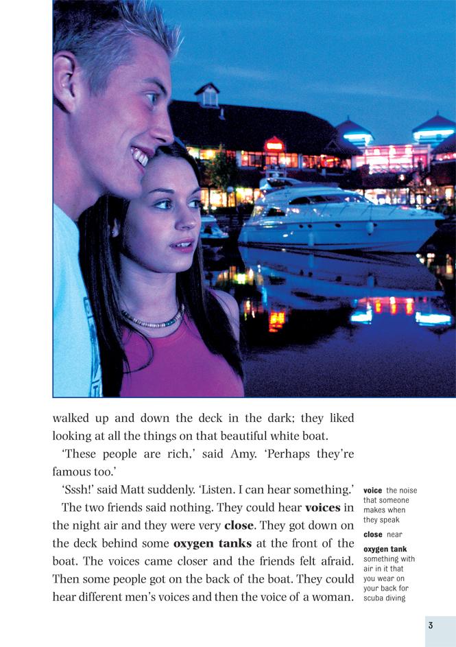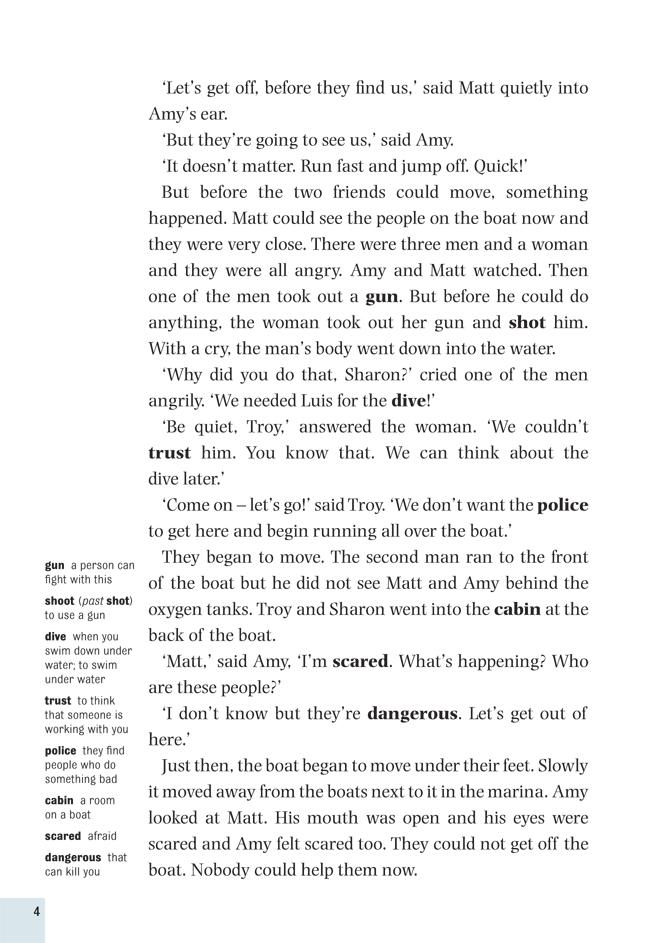 Amy and Matt are bored. They don't want to study for their exams they want to have a good time. So they drive to the marina at West Palm Beach, and Matt jumps onto one of the boats. 'We can go anywhere!' he jokes. But when the owners of the boat come back and find them, Amy and Matt are in deep trouble. Matt is a good swimmer and enjoys scuba-diving, but now he must dive for their lives.