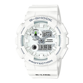 Các tính năngG-SHOCK G-LIDE từ lâu đã là lựa chọn ưa thích của các vận động viên lướt sóng hàng đầu thế giới cũng như vận động viên thể thao đường phố, và các mẫu bổ sung mới này trong năm 2016 hứa hẹn sẽ tiếp tục phát huy truyền thống đó. Mẫu kết hợp GAX-100 mới mang đến những ưu điểm tốt nhất của cả đồng hồ kim lẫn đồng hồ số. Vạch giờ lớn, kim giờ và kim phút cho phép dễ đọc. Kim phút hình mũi tên và màu tương phản giữa các kim cho phép đọc nhanh ngay cả khi đang chèo thuyền hoặc chờ đến cơn sóng tiếp theo. Các chức năng hỗ trợ lướt sóng bao gồm Đồ thị thủy triều, Dữ liệu tuần trăng, và đo nhiệt độ. Hầu như toàn bộ đồng hồ này được thiết kế để hỗ trợ các hoạt động trên biển mùa hè. Tính năng Đồ thị thủy triều dạng kim cho phép đọc trực quan các điều kiện ở thời điểm hiện tại khi cần thiết. Ba phiên bản màu đen, trắng và hai màu đi kèm với bề mặt nửa mịn. Thiết kế đơn sắc tiêu chuẩn cũng như màu sắc mùa hè của các mẫu G-LIDE mới này chắc chắn sẽ thu hút những người lướt sóng và yêu thích thời trang đường phố trên toàn thế giới. • Dữ liệu tuần trăng • Đồ thị thủy triều dạng kim • Đo nhiệt độ • Khả năng chống từ lớp ISO764Đặc điểm kỹ thuật- - Vật liệu vỏ / gờ: Nhựa