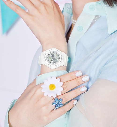 Cùng bước vào vẻ đẹp tràn đầy hy vọng từ những đóa hoa cúc vớiBGA-270. Họa tiết hoa cúc nằm trên mặt đồng hồ mang lại vẻ đẹp trong sáng và thuần khiết. Các điểm nhấn hoa cúc ngọt ngào và các vạch chỉ giờ bằng kim loại được thiết kế đơn sắc sang trọng và thanh nhã. Vỏ ngoài dc thiết kế với màu xanh biển tươi mát, màu hồng trẻ trung và màu trắng giản dị. Với cấu trúc chống va đập và khả năng chống nước ở độ sâu lên đến 100 mét, những chiếc đồng hồ bắt mắt này giúp bạn luôn vui tươi trong những ngày bận rộn nhất.