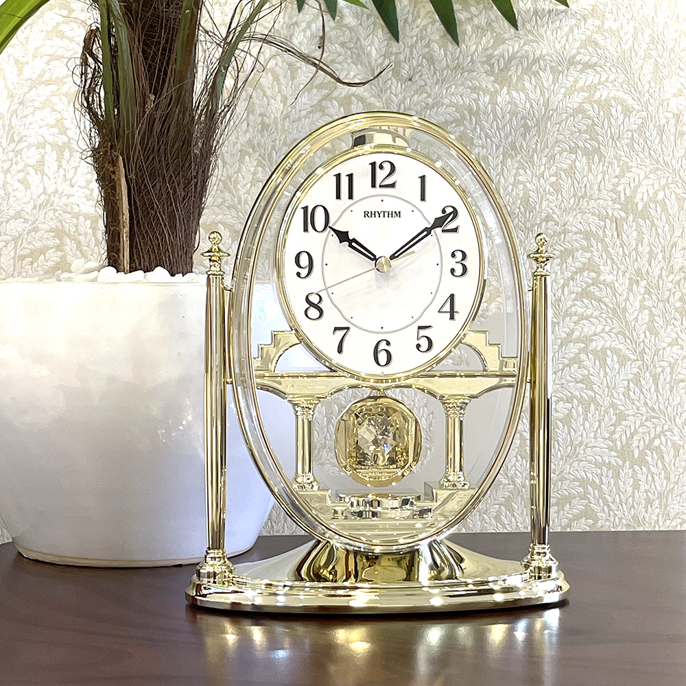 Đồng hồ để bàn Nhật Bản Rhythm 4RP796WS18, dùng pin (AAx2), vỏ nhựa cao cấp mạ vàng kết hợp mica trong suốt nhìn xuyên thấu, Kích thước 14.0 x 22.8 x 8.3cm, trọng lượng 390g. Quả