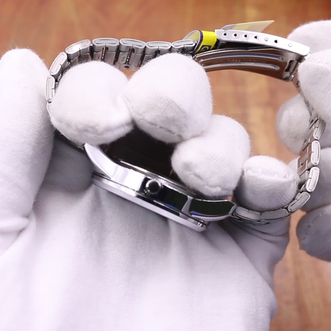 Thông số kỹ thuật - Chốt gập ba - Dây đeo bằng thép không gỉ - Mặt kính khoáng - Chống nước - Giờ hiện hành thông thường - Đồng hồ kim: 3 kim (giờ,