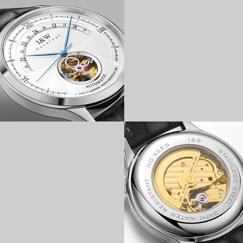 IW CARNIVAL IW525G-4 được hãng thiết kế mang phong cách cổ điển, mặt trắng làm chủ đạo, được nhiều người yêu thích. Thiết kế lộ cơ đăng cấp của IW CARNIVAL IW525G-4 khoe ra bộ máy bên trong, khẳng định khả năng chế tác đồng hồ của một trong những thương hiệu hàng đầu của Thụy Sỹ.