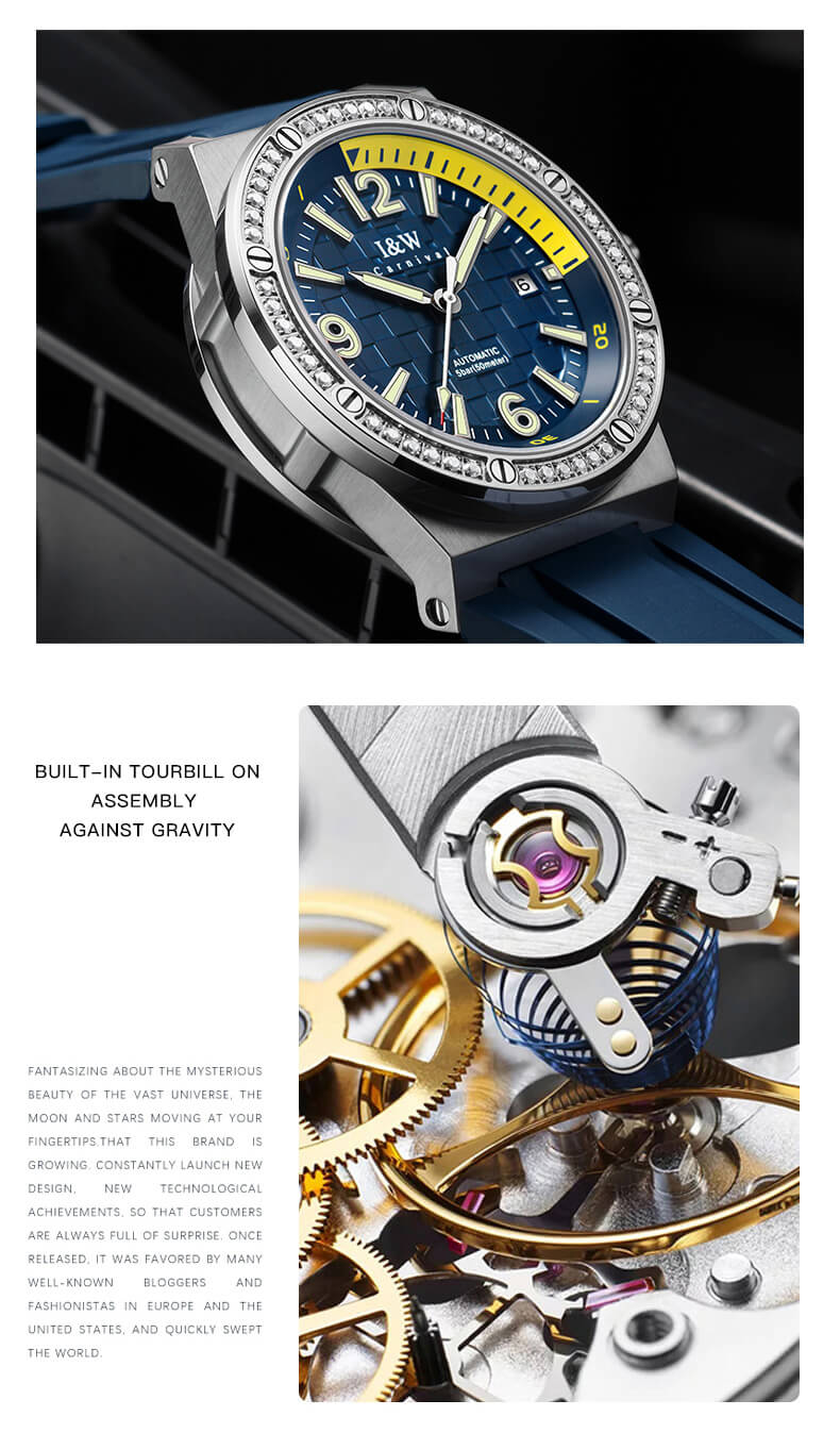 Đi sâu vào bộ máy bên trong, “Trái tim” của IW CARNIVAL IW661G-3 là cỗ máy cải tiến với 21 chân kính, tích hợp tính năng lên cót tay và lên cót tự động. Độ chịu nước 5ATM dùng trong sinh hoạt hằng ngày như : đi mưa,rửa tay,rửa đồ...