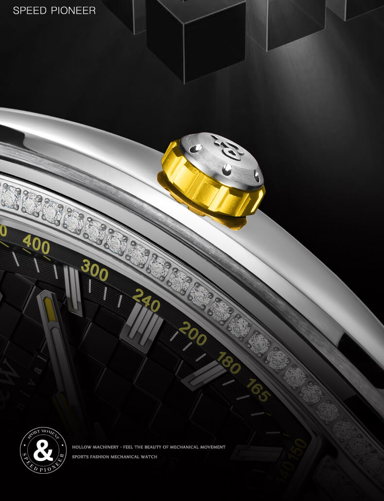 Thiết Kế Mạnh Mẽ và Độc Đáo: Thiết Kế Độc Đáo và Phong Cách mặt số với vân kẻ ô vuông là một điểm nhấn nổi bật, tạo nên sự độc đáo và phong cách cho chiếc đồng hồ. Các ô vuông được sắp xếp một cách hợp lý và tinh tế, tạo ra một bố cục hấp dẫn và độc đáo. Sự kết hợp giữa các đường kẻ và ô vuông tạo ra một trải nghiệm thị giác độc đáo và cuốn hút
