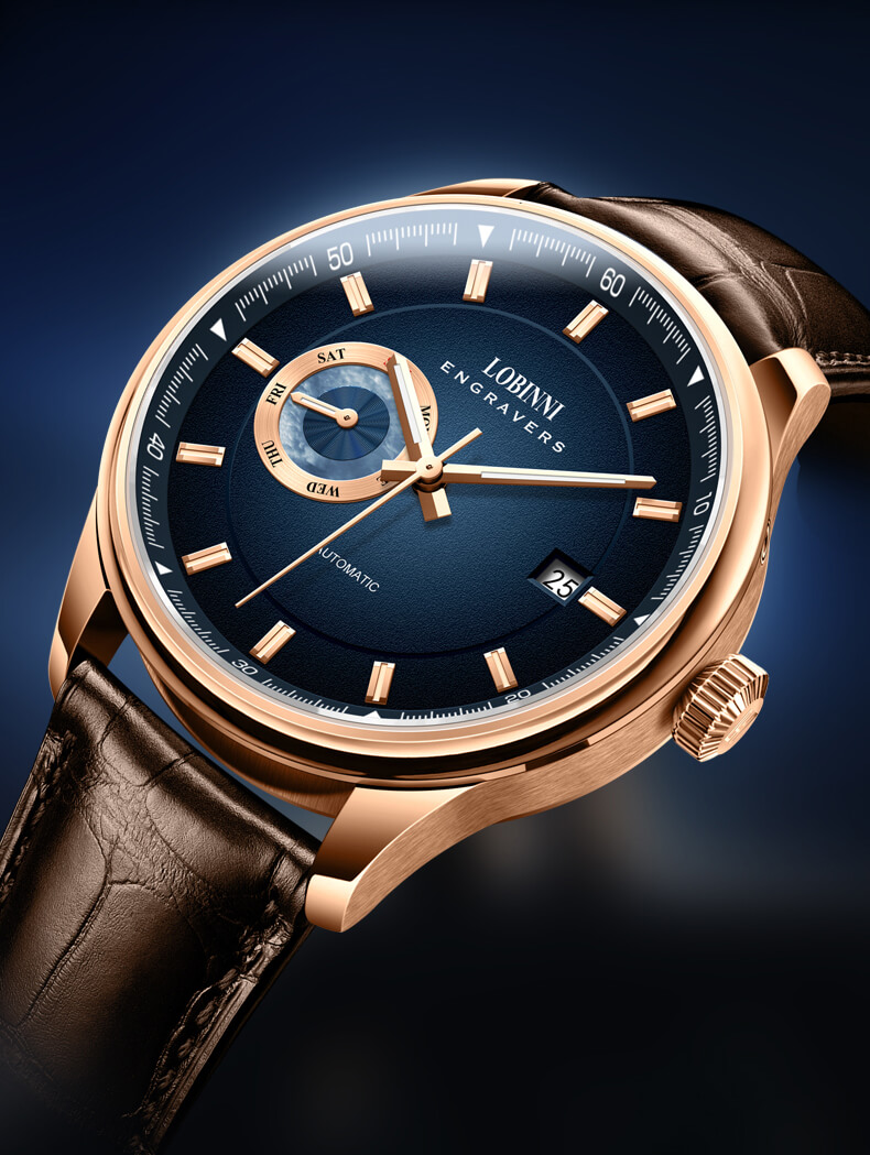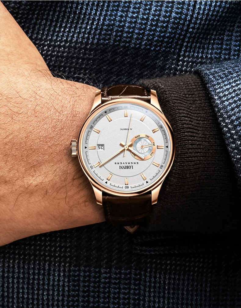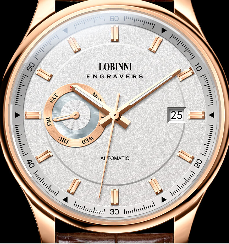 Đồng hồ nam chính hãng LOBINNI Thụy Sỹ Thiết kế sang trọng, đẳng cấp cho quý ông Thời gian trữ cót lâu lên đến 40h Chống nước 5ATM, Kính sapphire Toàn bộ máy được làm