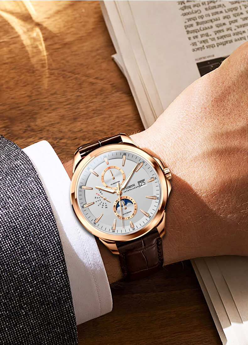 Đồng hồ nam chính hãng LOBINNI Thụy Sỹ Thiết kế sang trọng, đẳng cấp cho quý ông Thời gian trữ cót lâu lên đến 40h Chống nước 5ATM, Kính sapphire Toàn bộ máy được làm