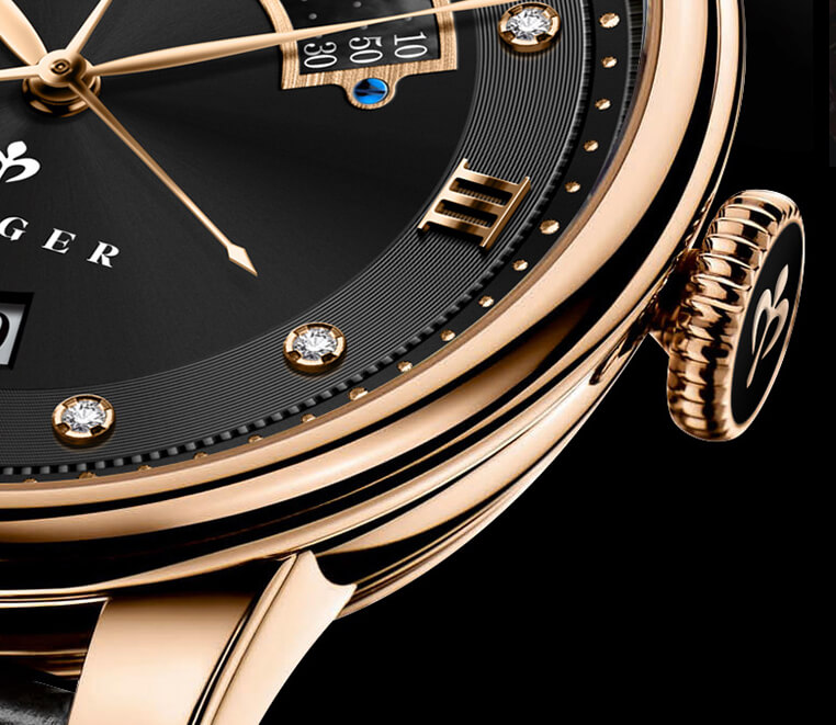 Đồng hồ Thụy Sĩ luôn mang lại cho người dùng một khoái cảm đặc biệt về cả diện mạo lẫn chất lượng. Như chiếc Poniger này, đẳng cấp thể hiện qua dòng chữ "SWISS MADE" được in trên mặt số. Bên cạnh đó còn là: