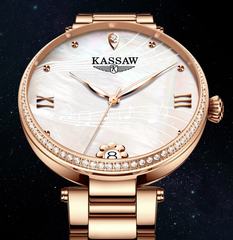 Đồng hồ nữ chính hãng kassaw Thụy Sỹ Thiết kế hiện đại,sang trọng dành cho phái nữ Thời gian trữ cót lâu lên đến 40h Chống nước 5ATM, Kính sapphire Toàn bộ máy được làm