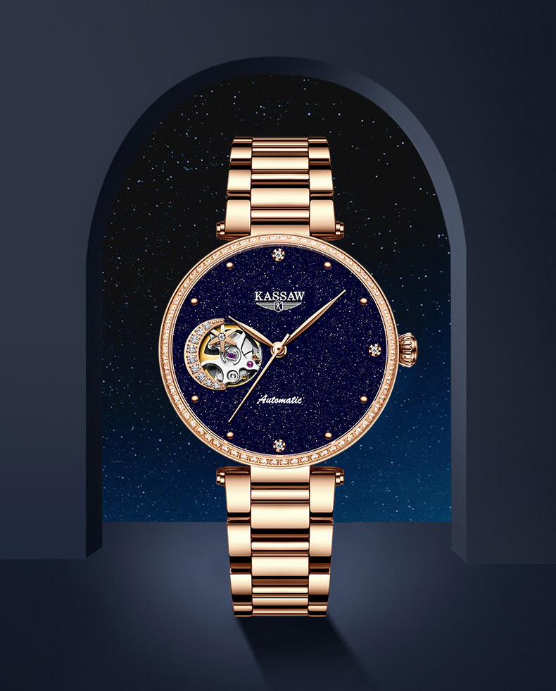Đồng hồ nữ chính hãng Kassaw Thụy Sỹ Thiết kế hiện đại,sang trọng dành cho phái nữ Thời gian trữ cót lâu lên đến 40h Chống nước 5ATM, Kính sapphire Toàn bộ máy được làm