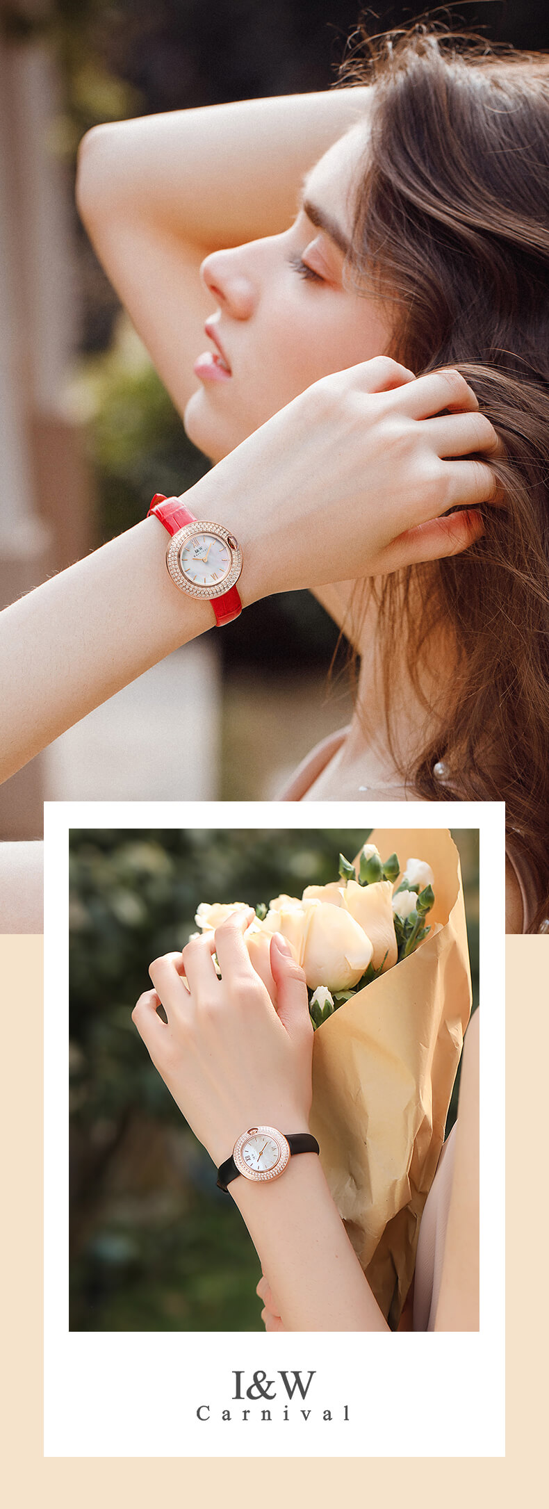 ✨Đồng Hồ Nữ I&W Carnival 3011L Chính Hãng BH 24T Chịu Nước 30m Kính Chống Xước Dây Da Cao Cấp ( Máy Quartz)