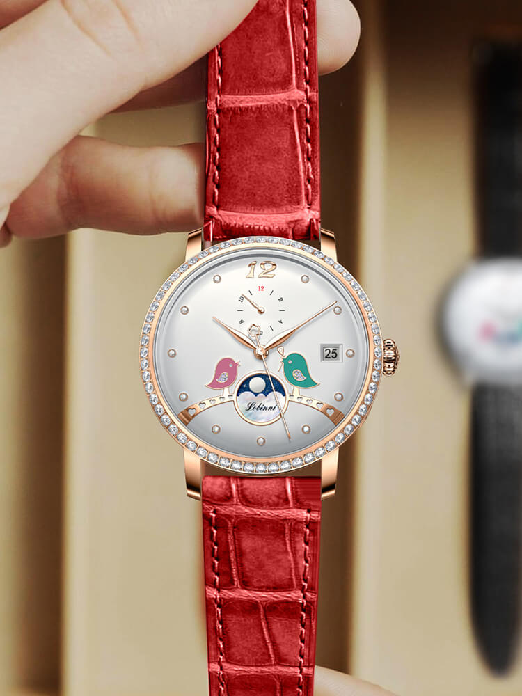 Nhãn hiệu LOBINNI Mã sản phẩm No.2065-1 Giới tính Nữ Kiểu máy Automatic (Máy Cơ) Đường kính mặt 36 mm Độ dày 9,7 mm Chất liệu vỏ Thép không gỉ 316L Chất liệu dây Dây da cao cấp Chất liệu mặt kính Mineral Crystal