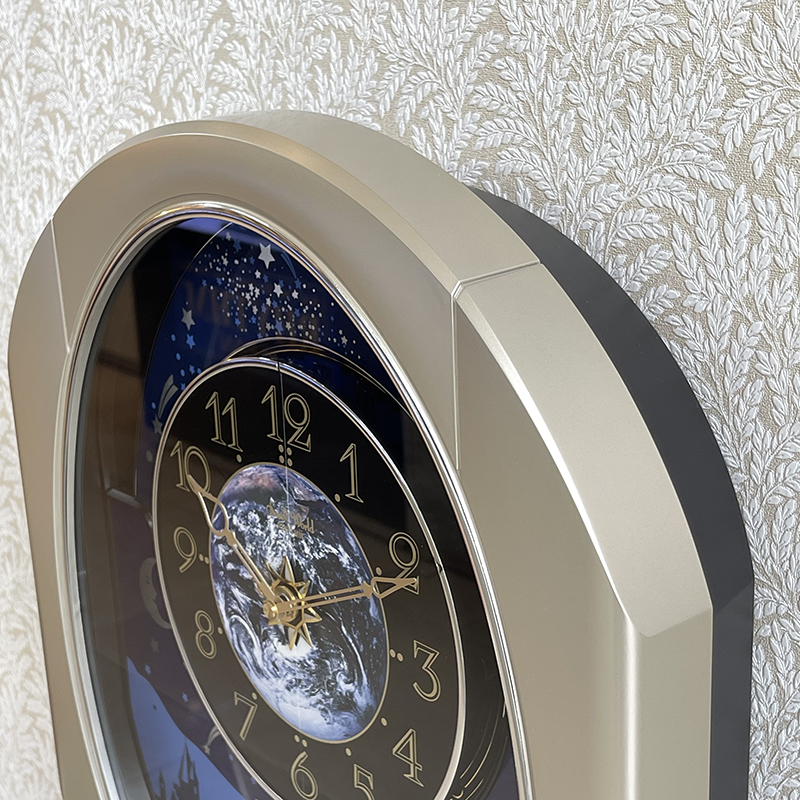 Mua tại TiktokĐồng hồ treo tường Rhythm Magic Motion 4MH408WU19 , dùng 2 pin (D). Vỏ nhựa cao cấp sơn nhủ màu vàng sâm banh. Kích thước 38.4 x 47.0 x 13.9cm, trọng lượng 3.3kg. Âm thanh thính phòng CTS (CLARION TONE SOUND) với 24 bản nhạc cổ điển ( 12+12 Melodies), 6 bản giáng sinh (6 X-mas SONGS ). Nút chinh âm lượng tiện lợi. Cảm ứng ánh sáng tự động không phát nhạc khi thiếu sáng. Quả lắc đính pha lê. Núm chỉnh âm lượng tiện lợi.