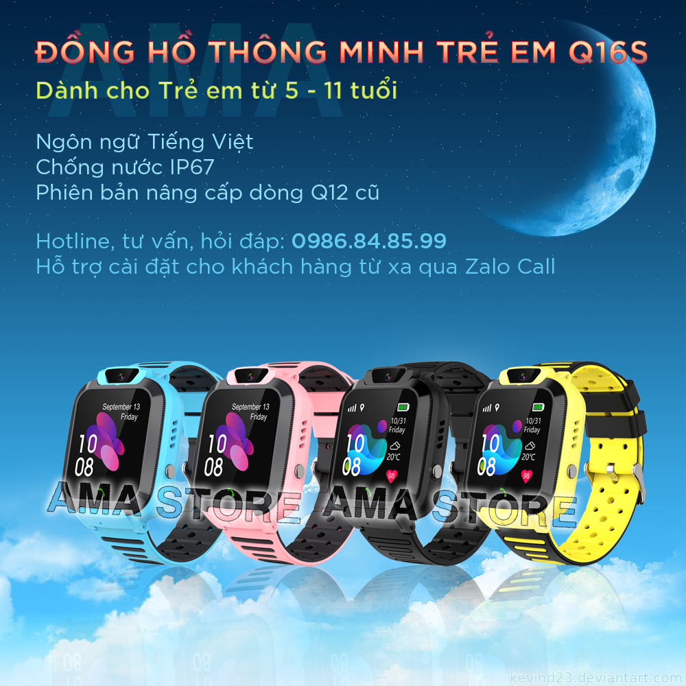 ✨Đồng hồ Thông minh Chống nước IP67 Dành cho Trẻ em nhuẩn AMA Watch Q16S Hàng chính hãng